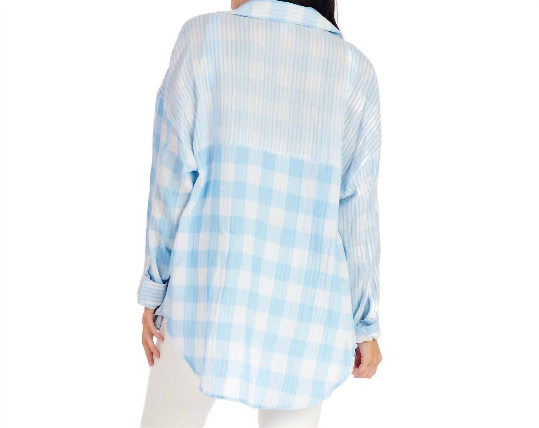 Классическая рубашка на пуговицах, которая никогда не выйдет из моды. Дополните свой летний гардероб рубашкой на пуговицах Jameson от Mudpie, которая идеально сочетает в себе стиль и комфорт. Этот топ с длинными рукавами, выполненный из хлопка, украшен игривым клетчатым узором и дополнен удобным большим нагрудным карманом. Идеально подходит для пляжных дней благодаря классическому, но в то же время непринужденному стилю. Эта синяя рубашка на пуговицах с застежкой на пуговицы и воротником-стойкой обеспечивает непринужденный стиль.