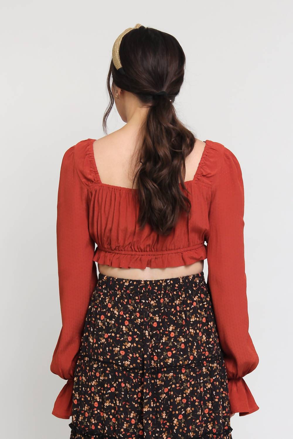 Идеальная посадка, милый дизайн, мягкая ткань. Вам понравится все в этой футболке с длинным рукавом. Дополните свой гардероб топом Carolina Long Sleeve от Cotton Candy в стиле бохо-шик яркого медного оттенка. Эта блузка выполнена из текстурированной ткани Swiss Dot с длинными рукавами и манжетами-оборками, дополненными романтичным вырезом в форме сердца с оборками. Регулируемый завязочный пояс и эластичная талия обеспечивают идеальную посадку. Изготовлена ​​из 100% вискозы. Рекомендуется ручная стирка для сохранения яркого вида.