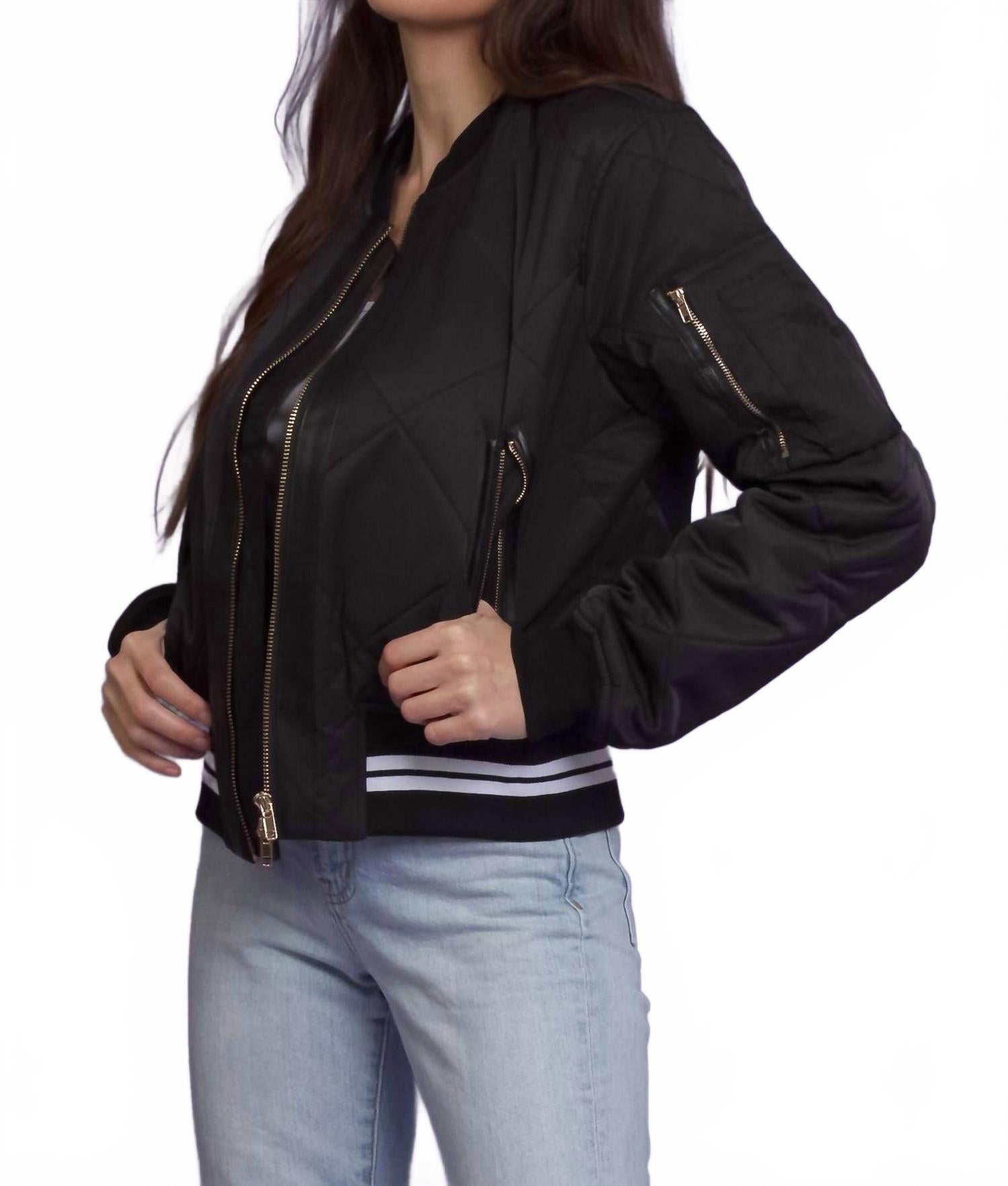 Новая версия вашей любимой классической куртки-бомбера. Выведите свой уличный стиль на новый уровень с стеганой курткой-бомбером Varsity от Fate, которая сочетает в себе стиль и комфорт. Эта черная куртка с длинными рукавами и круглым вырезом, эффектной золотой фурнитурой и отделкой из искусственной кожи добавляет нотку роскоши. Изготовленная из 100% полиэстера с подкладкой из 100% хлопка, она практична благодаря боковым карманам на молнии и дополнительному карману на рукаве. Застежка: молния. Уход: рекомендуется ручная стирка.
