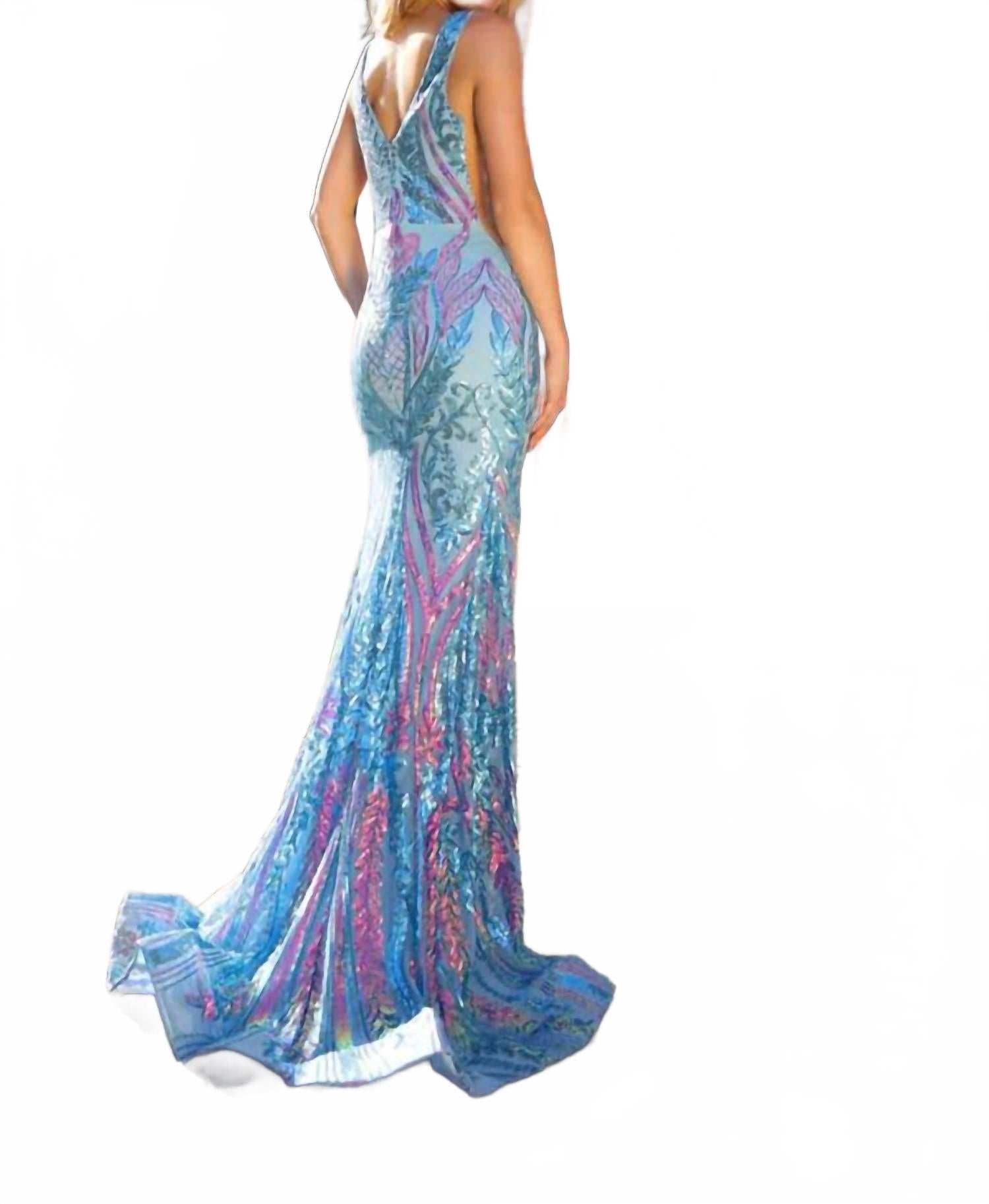 Синее вечернее платье с V-образным декольте и пайетками Nox Anabel 20 098₽