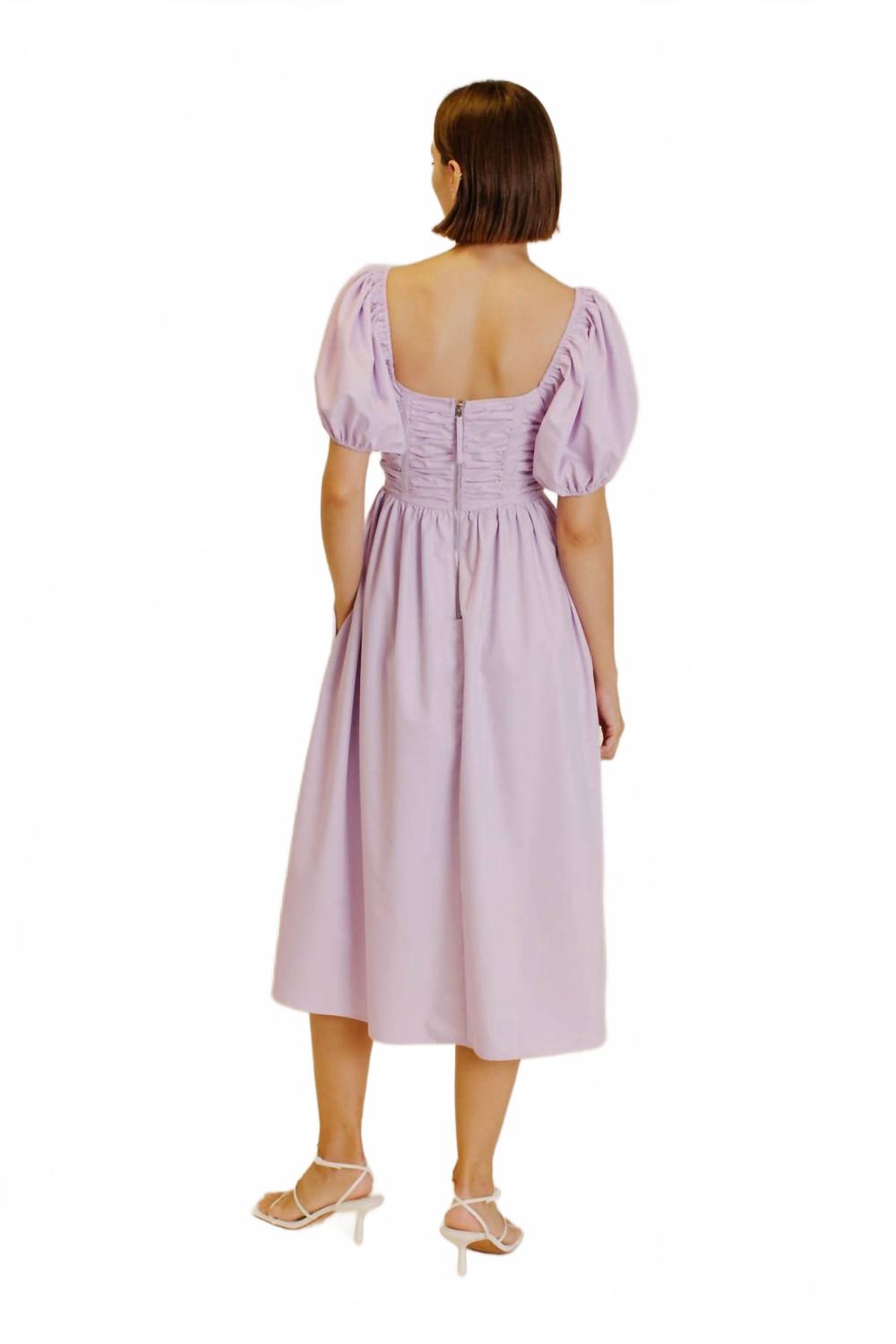 Платье миди настолько универсально, что варианты его ношения безграничны. Дополните свой весенний гардероб платьем миди Grosgrain от Aureum, выполненным в шикарном лавандовом оттенке. Это универсальное изделие с короткими рукавами и изысканным квадратным вырезом позволяет носить его как на плече, так и навыпуск. Прочный А-образный силуэт подчеркивается дерзкой открытой серебристой молнией сзади. Уход прост: ручная стирка сохранит элегантный вид платья. Платье идеально подходит для званых ужинов и празднования Дня независимости.