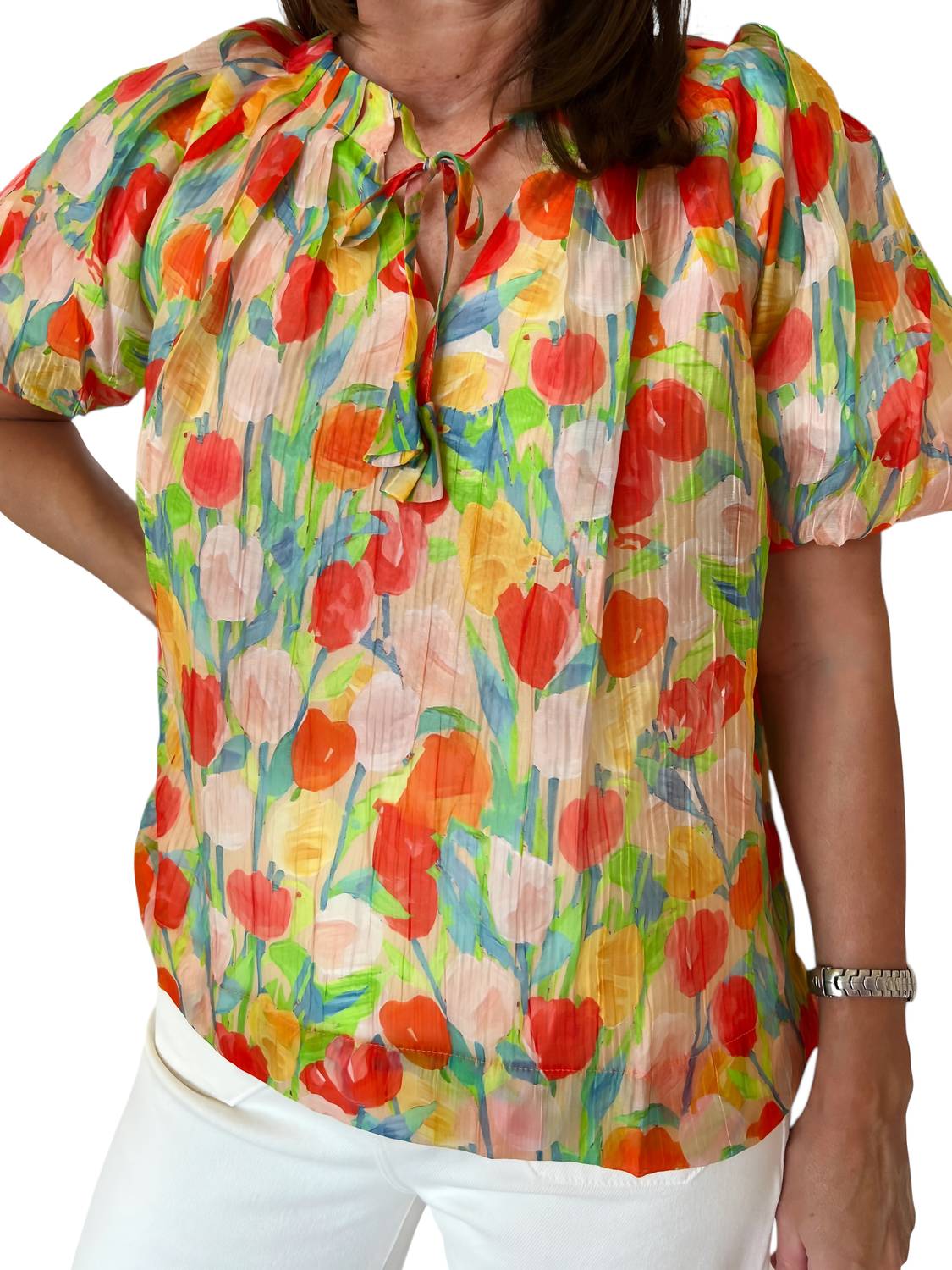 Представляем топ Heidi с рукавами-фонариками от Jade - шикарное изделие с цветочным принтом, идеально подходящее для любого весеннего случая. Короткие рукава-фонарики и уникальный дизайн в виде тюльпана добавят элегантности вашему гардеробу. Верхний слой - 100% вискоза, подкладка - 100% полиэстер. Застежка - на застежке. Создайте непринужденный стиль с топом Heidi, который идеально подойдет как для повседневной, так и для официальной встречи.