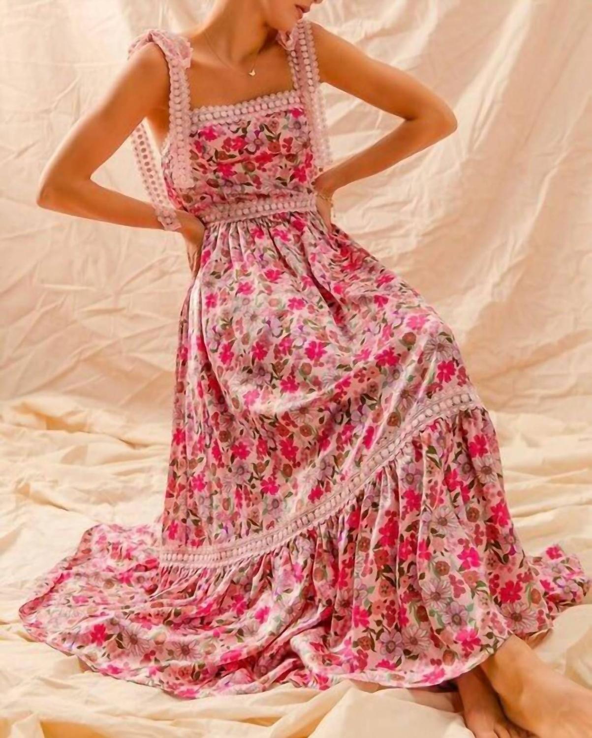 Кто не любит хорошее макси-платье? Это платье вы будете носить с собой из сезона в сезон. Дополните свой гардероб платьем Betty Dress от So Me - потрясающим розовым макси с цветочным принтом, созданным для современных модниц. Это платье без рукавов с квадратным вырезом, регулируемыми кружевными бретелями и изысканной талией в стиле ампир с многоуровневым низом с оборками для дополнительной элегантности. Состав: 70% хлопок, 30% полиэстер. Застежка: надевайте. Уход: ручная стирка и сушка на веревке. Доступно в размерах S, M и L.