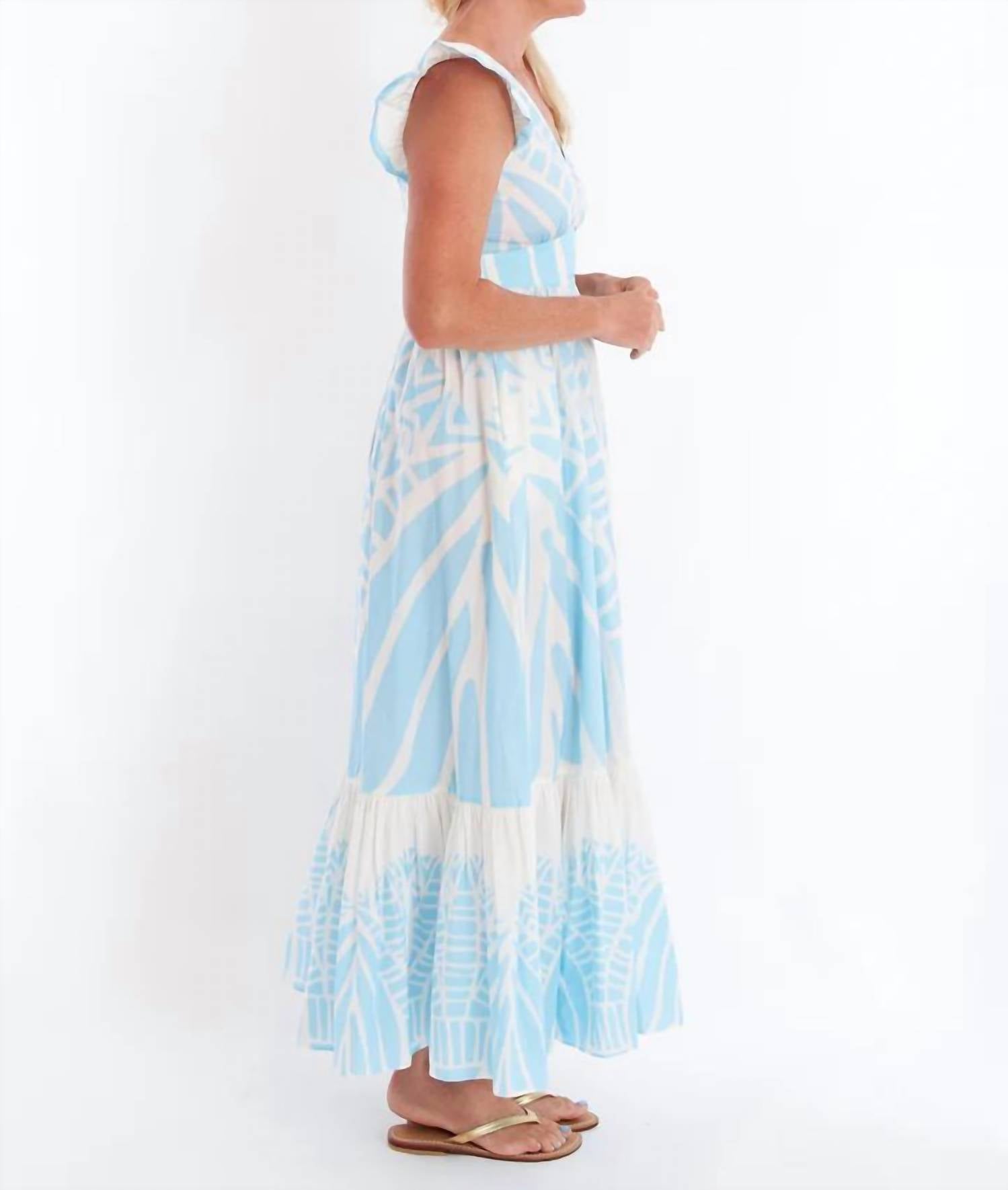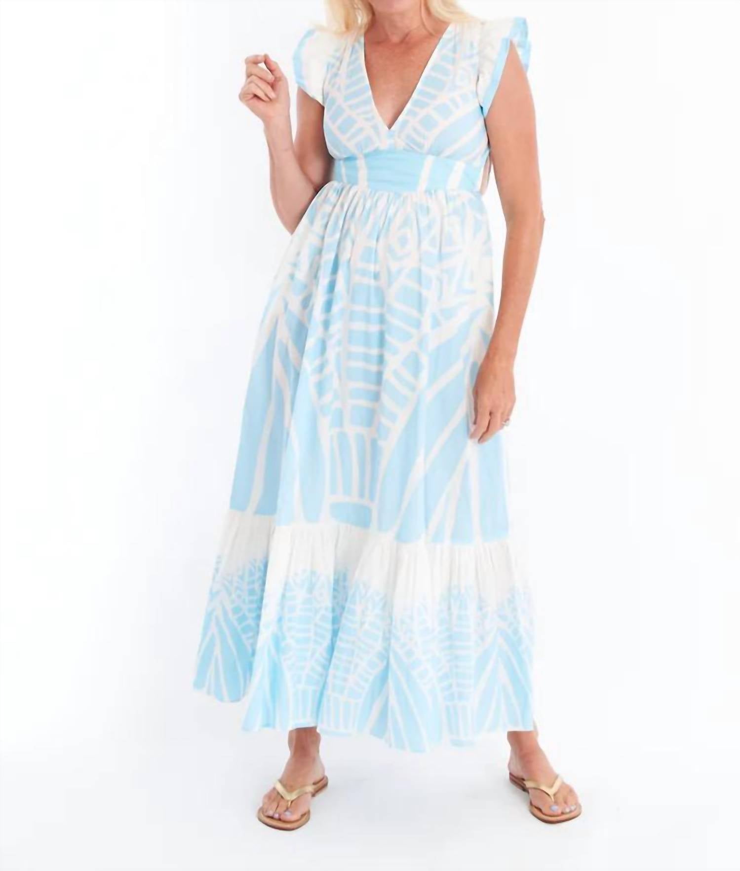 Платье макси, столь же милое, сколь и удобное. Представляем платье Henning от CK Bradley - игривое и воздушное дополнение к вашему летнему гардеробу в восхитительном оттенке Papyrus Sky. Это платье макси с рукавами-крылышками, V-образным вырезом и очаровательной открытой спиной с застежкой на пуговицы. Платье изготовлено из 100% хлопка, имеет завышенную талию и многоярусную юбку, что придает ему женственности. Это платье с узором идеально подходит для любого случая и легко создаст свежий и элегантный образ. На модели размер S.