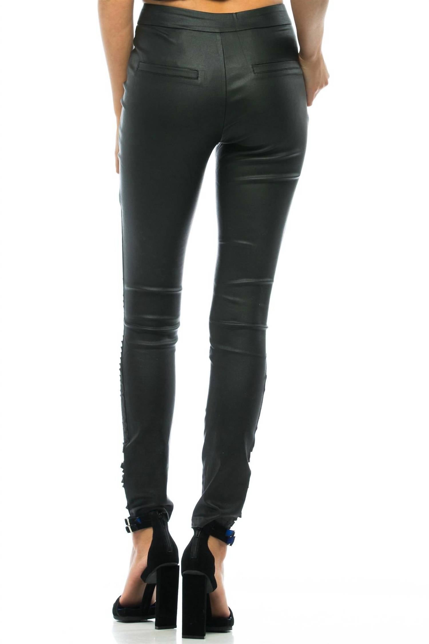 Каждому нужна хорошая пара узких брюк, и эта модель будет вам по душе в любое время года. ASILIO представляет брюки Kruger Pant - эффектную модель насыщенного черного цвета, обеспечивающую элегантный облегающий крой. Эти брюки с покрытием и средней посадкой украшены диагональными лазерными полосками спереди, которые добавят изюминку вашему концертному образу. Застежка-молния и боковые карманы сочетают в себе стиль и функциональность. Рекомендации по уходу: ручная стирка и сушка на горизонтальной поверхности для долговечности.