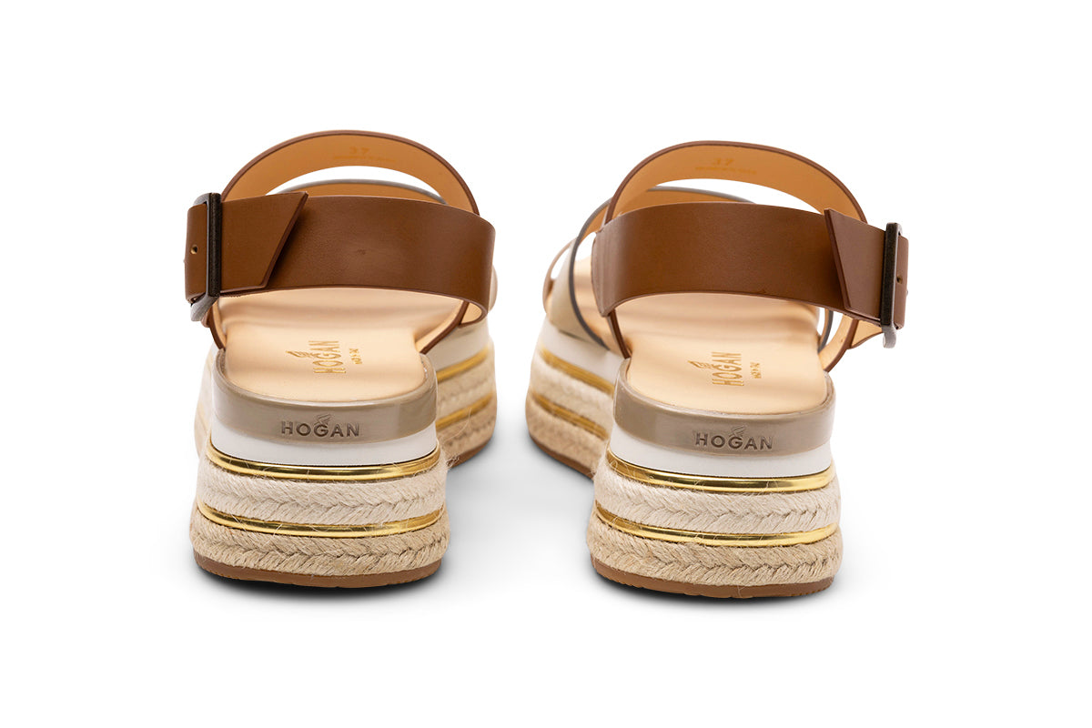 Hogan H432 Кожаные сандалии на платформе, коричневый