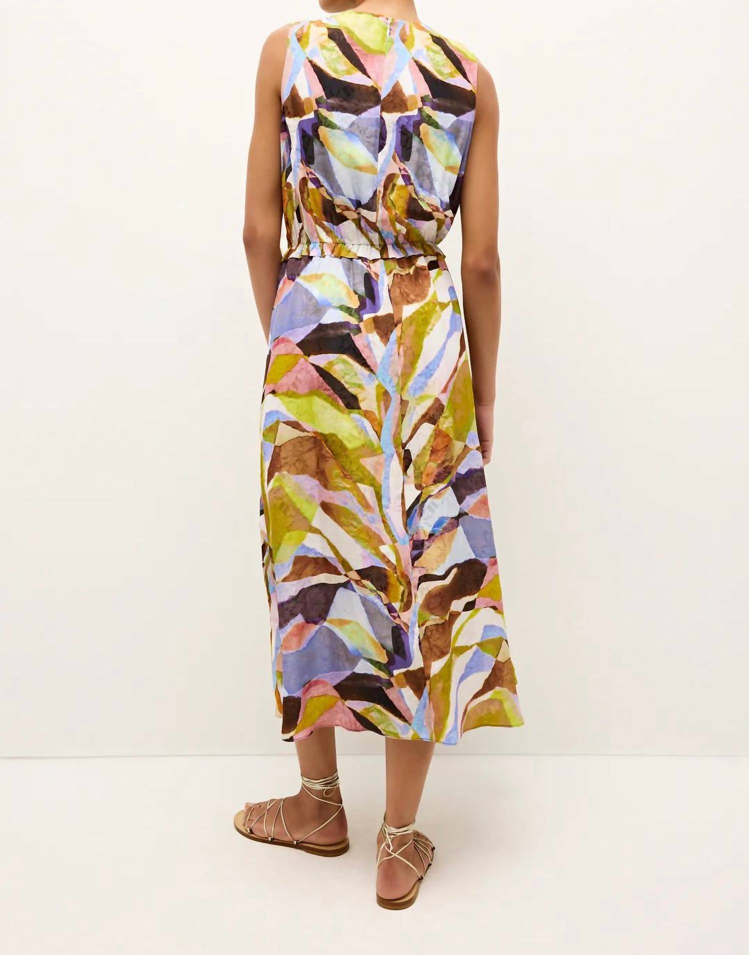 Платье миди настолько универсально, что ваши варианты его ношения безграничны. Представляем платье Jala от Marie Oliver - эффектное дополнение к вашему весеннему гардеробу с эффектным узором «Витраж». Это платье миди без рукавов А-силуэта выполнено из роскошной смеси 51% шелка и 49% вискозы, сочетающей элегантность и комфорт. Модель имеет эластичный пояс с оборками, карманы в боковых швах и потайную молнию с крючком и петлей по центру спинки. Уход: только химчистка, что гарантирует сохранность привлекательного вида и яркости.