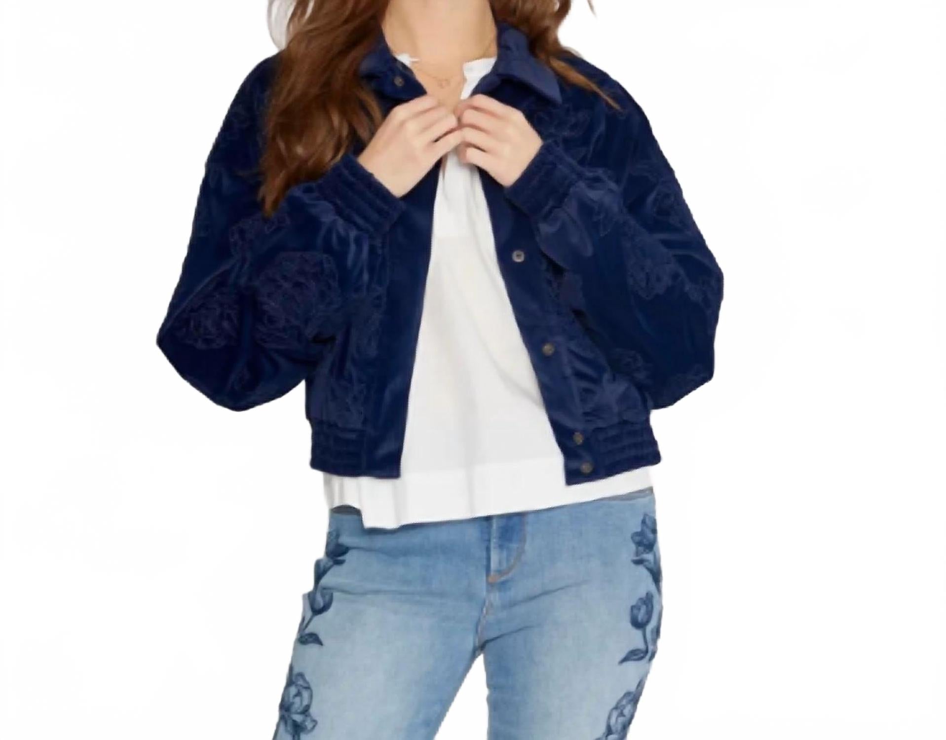 Новая интерпретация вашей любимой классической куртки-бомбера. Представляем Detroit Velvet Bomber Etched от DRIFTWOOD - потрясающую модель, которая гармонично сочетает в себе классический стиль и женственность. Эта бархатная куртка-бомбер украшена изысканной цветочной вышивкой, которая эффектно смотрится на однотонном синем фоне. Удобная конструкция включает карманы и застежку на пуговицы. Уход за курткой прост: можно стирать в стиральной машине и сушить в стиральной машине, что делает ее не только стильной, но и практичной.