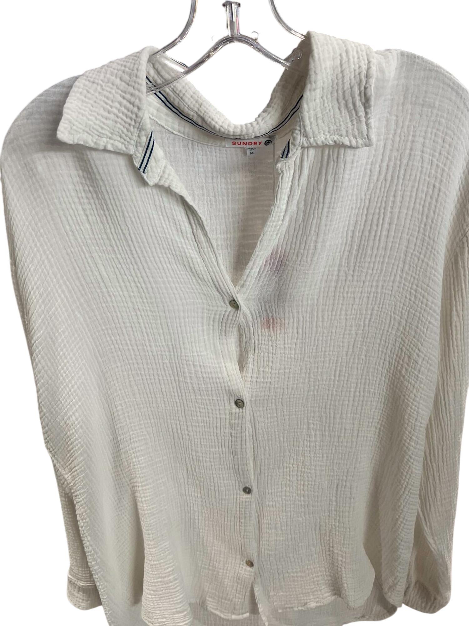 Классическая рубашка на пуговицах, которая никогда не выйдет из моды. Представляем рубашку на пуговицах с длинными рукавами от Sundry - стильный и незаменимый предмет летней рабочей одежды. Эта женская рубашка белого цвета с фактурной тканью изготовлена ​​из 100% хлопка, обеспечивает воздухопроницаемость и комфорт. Модель с классическим воротником и застежкой на пуговицах изготовлена ​​в США и соответствует размеру. Для сохранения качества изделия рекомендуется стирать в стиральной машине в холодной воде и сушить на вертеле.