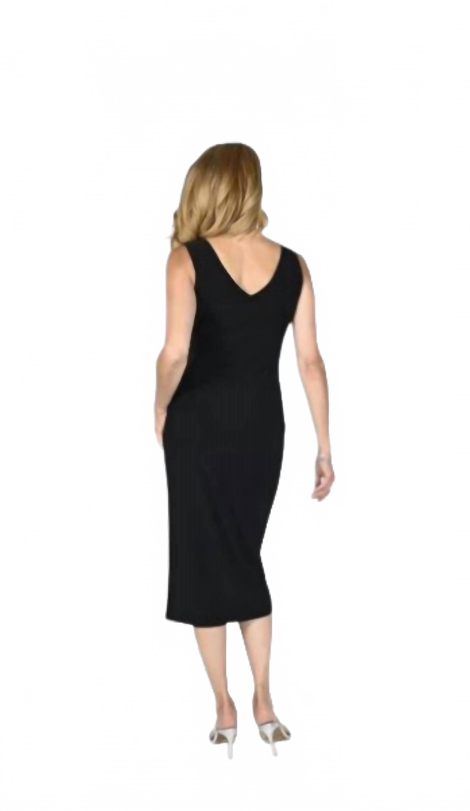 Платье миди настолько универсально, что варианты его ношения безграничны. Встречайте трикотажное платье без рукавов Frank Lyman - изысканный выбор для современной женщины. Это черное платье-футляр из 95% полиэстера и 5% эластана имеет привлекательную длину миди с элегантным разрезом сбоку, обеспечивая комфорт и стиль. Изготовленное в Канаде, оно отличается строгим дизайном и универсальностью, что делает его подходящим для любого случая. Сохраняйте элегантность и наслаждайтесь элегантной посадкой этого вневременного изделия.