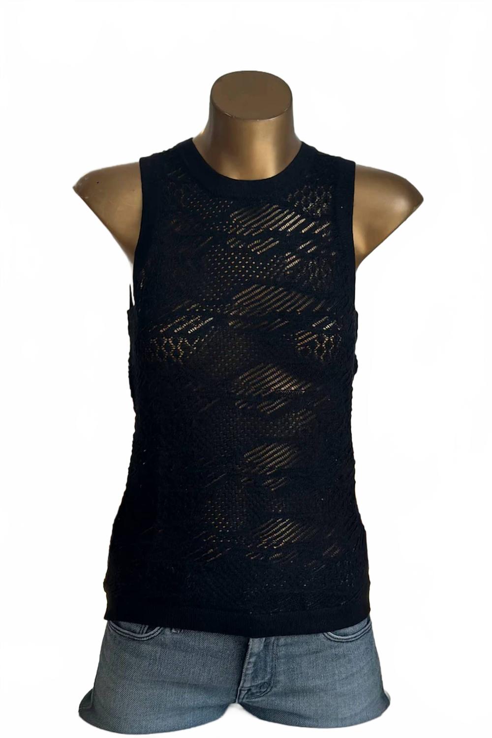 Шикарное дополнение к летнему гардеробу, идеально сочетающее комфорт и стиль. Майка без рукавов с рисунком, выполненная из роскошного микса 60% тенселя, 24% полиамида, 10% кашемира и 6% полиэстера, обеспечивает мягкость кожи. Топ с круглым вырезом и модным дизайном 90-х годов излучает непринужденную элегантность и идеально подходит для путешествий. Для сохранения качества рекомендуется профессиональная химчистка.