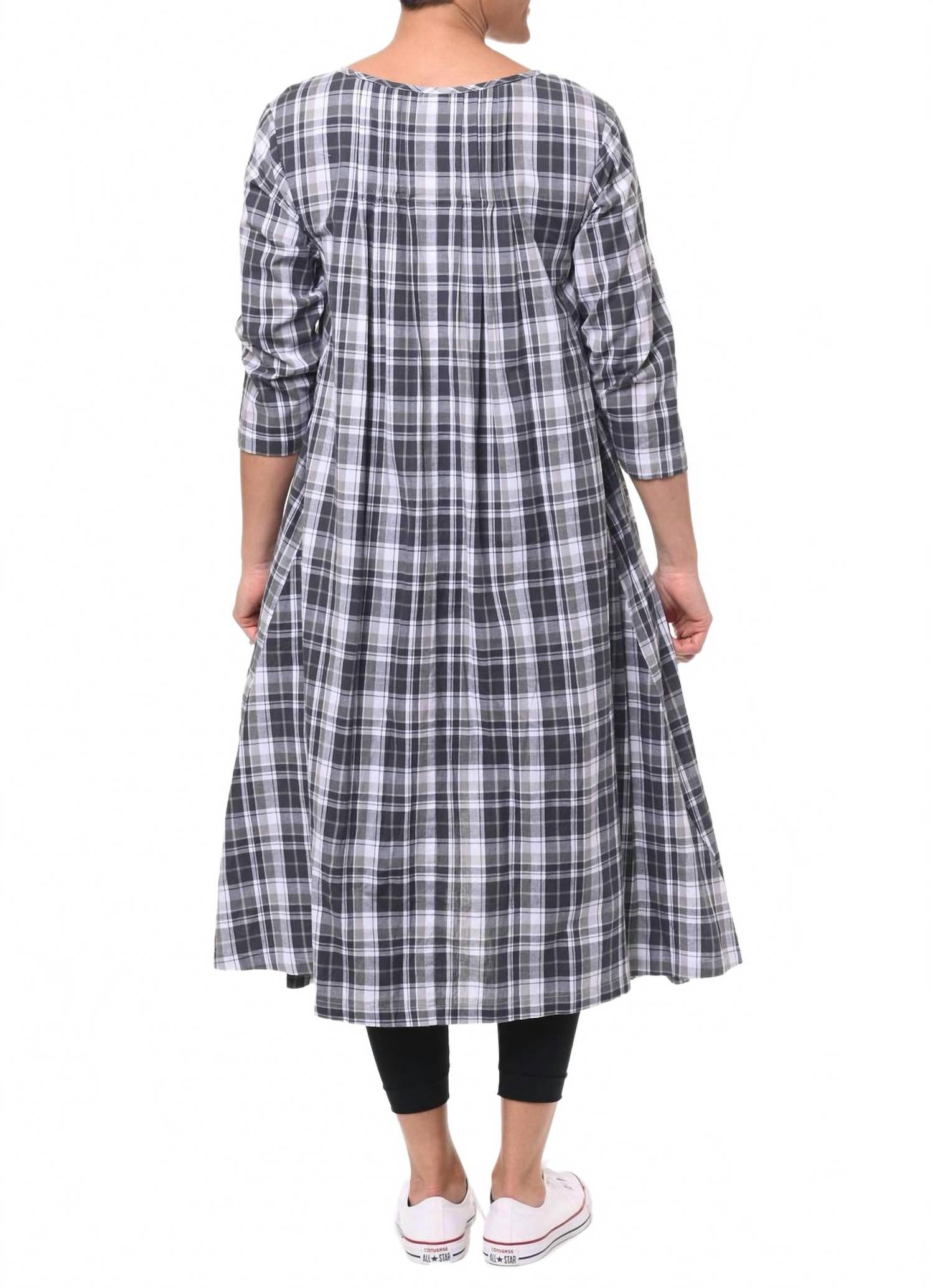 Платье идеальной длины существует. Откройте для себя платье Lexi Dress от Tulip Clothing - идеальное сочетание стиля и комфорта в клетку Grayscale Check. Это платье с рукавами три четверти выполнено из 100% хлопка, дышащего и легкого на ощупь. Длина миди (111 см по центру спинки) и элегантная плиссировка спереди с декоративным подолом добавляют нотку изысканности, дополняемую удобными карманами в боковых швах. Платье легко надевать, а машинная стирка и сушка на веревке делают уход за ним несложным. На модели размер X-Small.