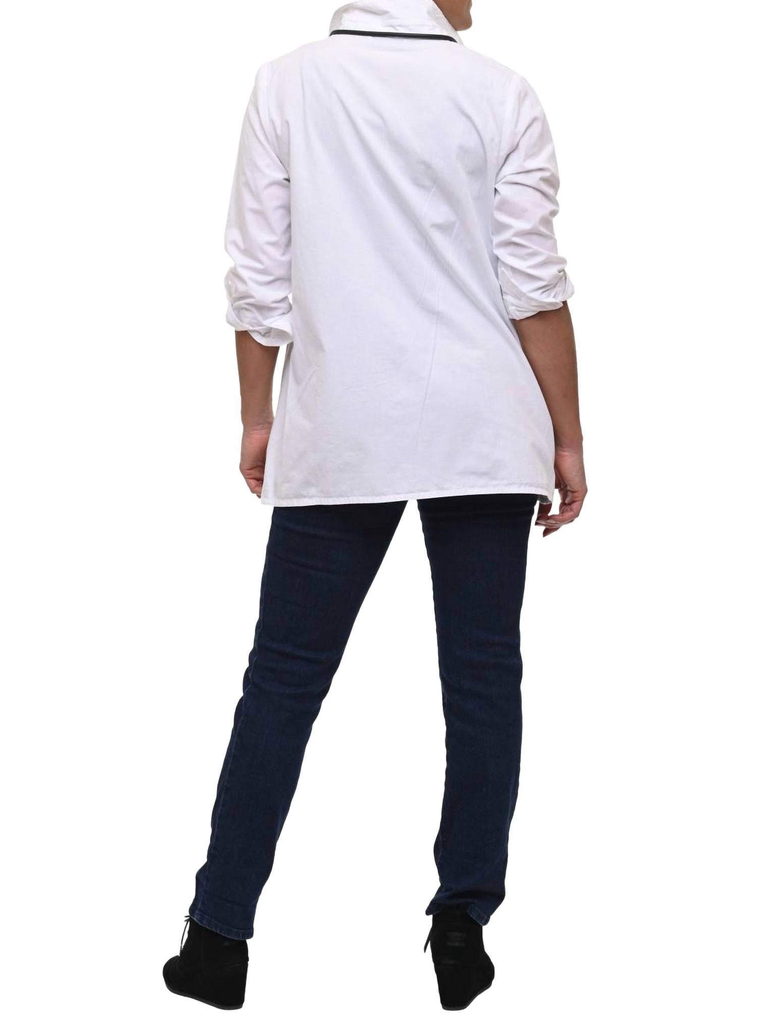 Представляем рубашку Blythe Button Down от Tulip Clothing - шикарное дополнение к вашему гардеробу с ноткой тихой роскоши. Эта рубашка с длинными рукавами белоснежного цвета, выполненная из 100% хлопка, отличается аккуратными передними швами, складками и удобными карманами в боковых швах. Благодаря классическому воротнику и манжетам на пуговицах эта рубашка на пуговицах идеально подходит для путешествий. Эту универсальную модель можно стирать в стиральной машине и сушить на веревке.
