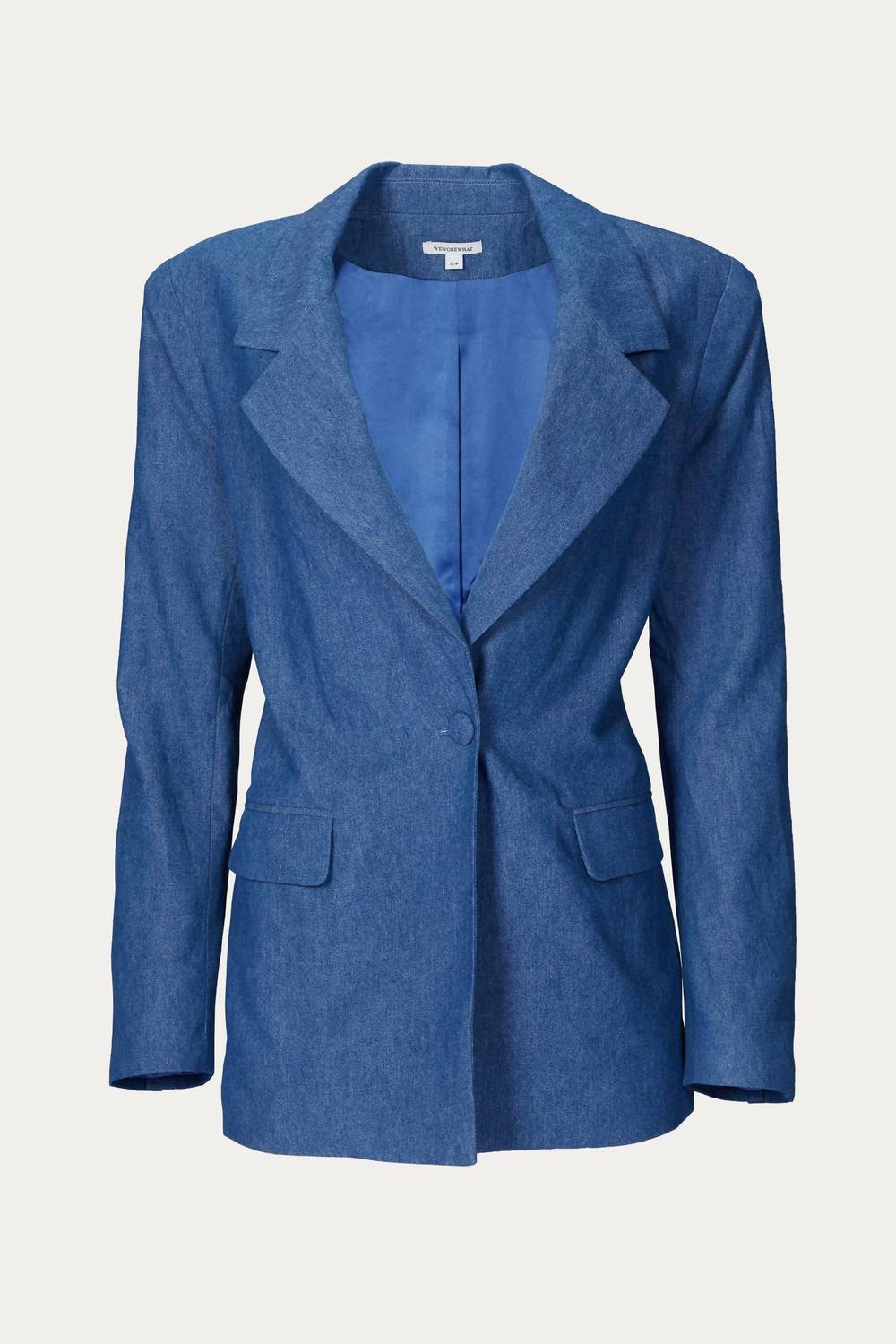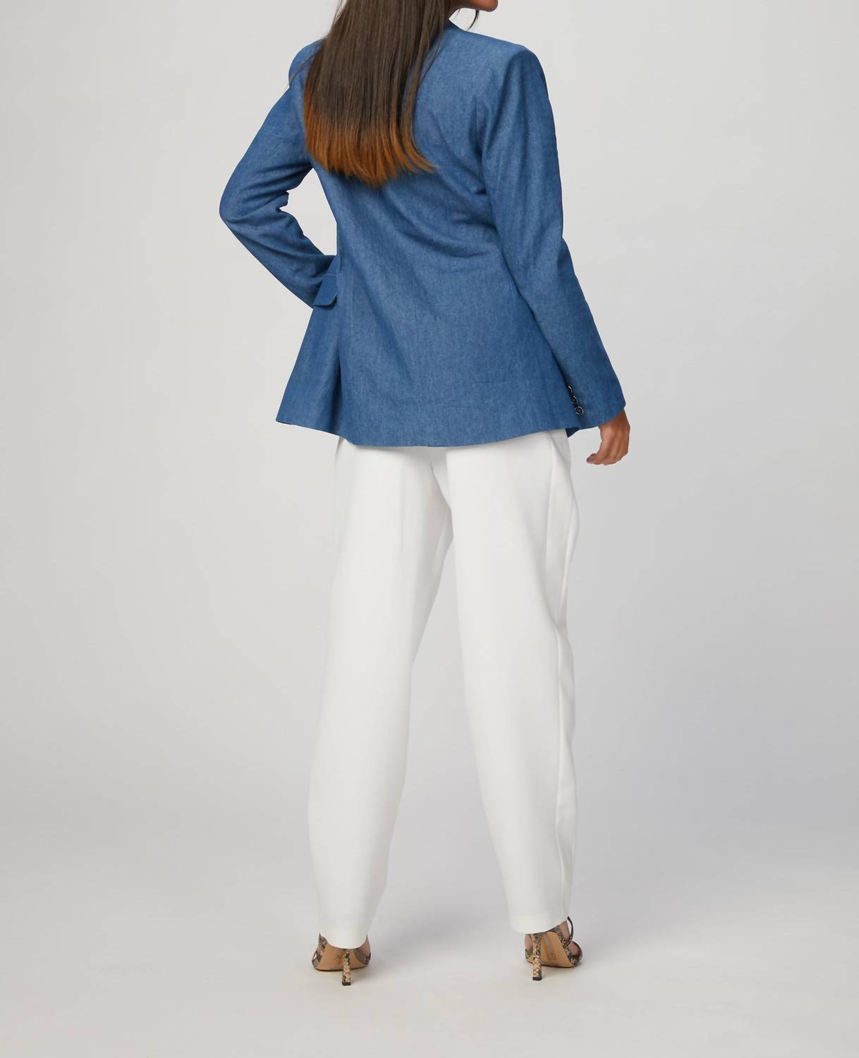 Женственный пиджак Downtown Indigo, сшитый из насыщенного темно-синего денима, имеет свободный свободный крой. Увеличенные подплечники и широкие острые лацканы создают облегающий силуэт. Сочетайте с любимыми облегающими брюками или накиньте поверх мини-платья для вечернего выхода. Полностью на подкладке.