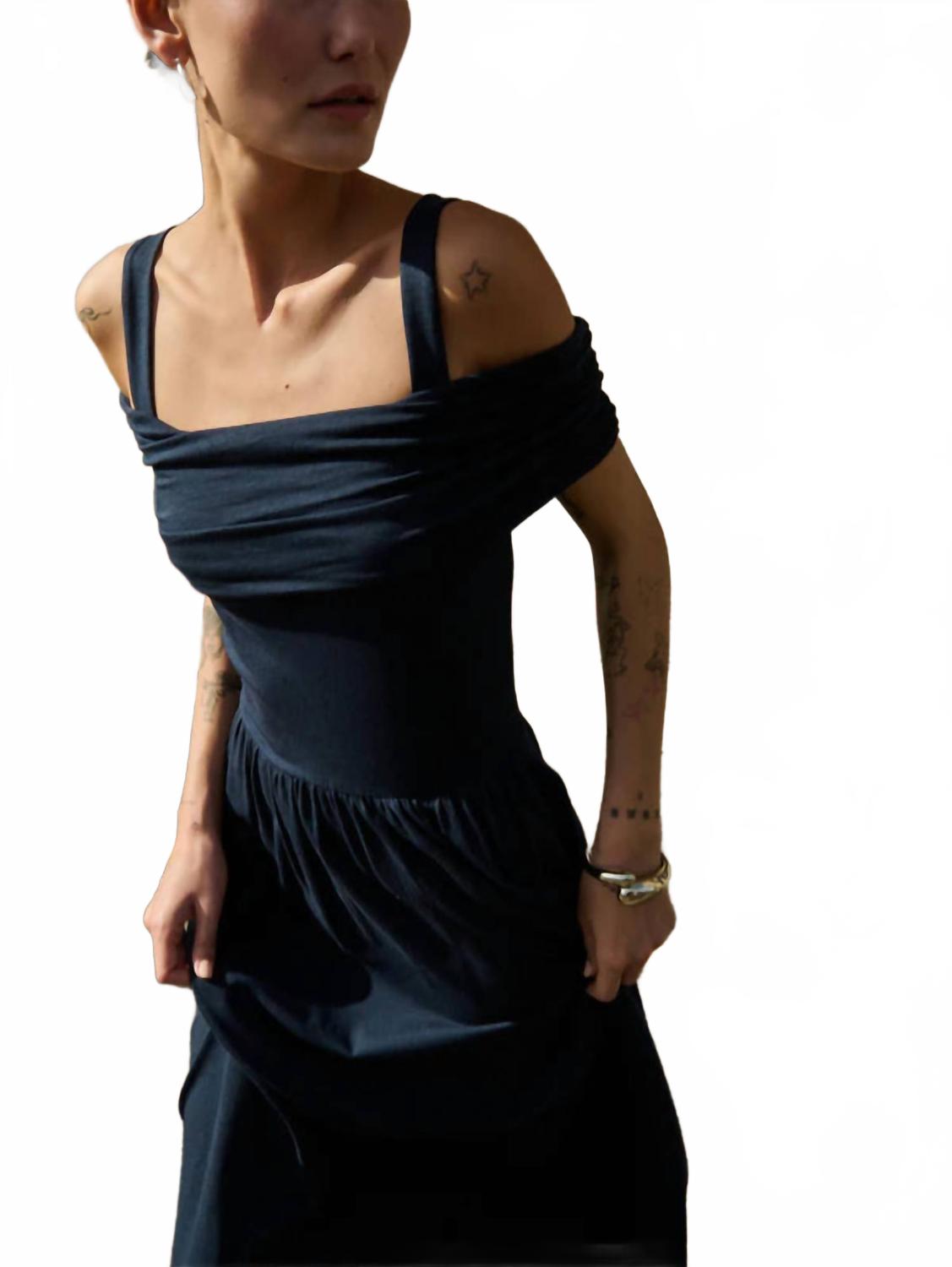 Представляем платье Nation LTD Tamaira в цвете «Ночное небо» - женственное и изысканное изделие, воплощающее непринужденную элегантность. Это макси-платье с короткими рукавами и открытыми плечами выполнено из роскошного трикотажного спандекса с облегающим лифом и присборенной юбкой до пола, обеспечивая комфорт и стиль. Состав: 50% пима-хлопок, 50% лиоцелл (Tencel). Длина: 43,5 дюйма. Можно надевать. Стирать в стиральной машине.