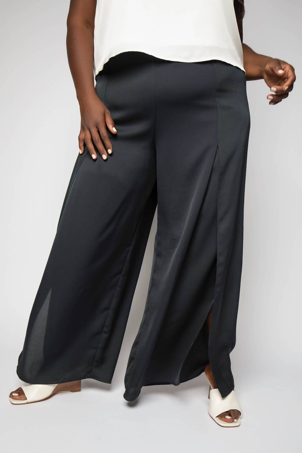Добавьте изюминку в свой гардероб с помощью брюк Statement Wide-Leg Pant от NZT by NIC+ZOE, выполненных в классическом черном цвете и создающих эффектный образ. Эти брюки из прочного полиэстера с высокой талией и свободным кроем обеспечивают комфорт и стиль. Модный широкий силуэт, длина внутреннего шва 72 см и увеличенный разрез на щиколотке придают им современный, но в то же время винтажный вид. Удобная застежка-липучка обеспечивает простой уход: машинная стирка и сушка в разложенном виде на горизонтальной поверхности.