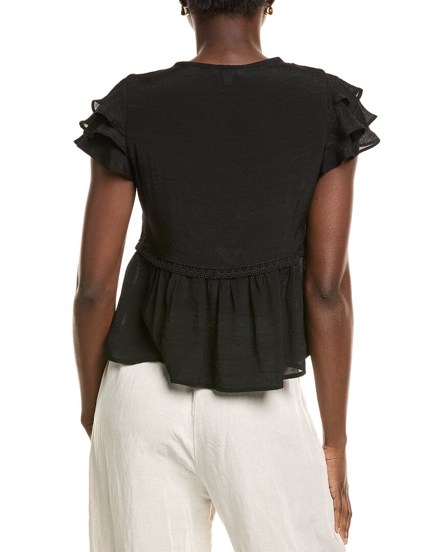 Добавьте изысканности в свой гардероб с блузкой Nanette Nanette Lepore цвета «насыщенный черный». Эта стильная блузка с разрезом на завязке, многоуровневыми рукавами с воланами и нежной кружевной отделкой придаст вашему образу женственности. Блузка изготовлена ​​из смеси 65% вискозы и 35% полиэстера, она одновременно удобная и стильная. Рост модели 175 см, размер S, длина изделия от плеча до подола около 50 см. Блузка импортного производства, ее можно стирать в стиральной машине, она идеально подойдет для любого случая.