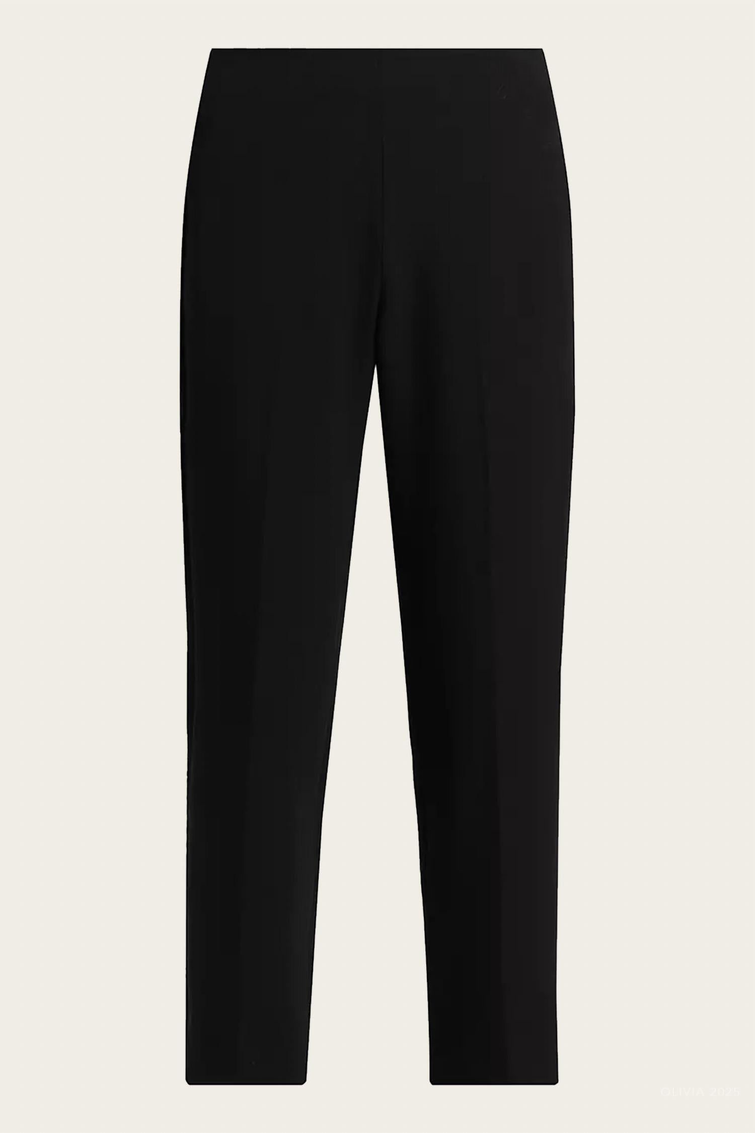 Эти элегантные креповые брюки имеют среднюю посадку и стильный укороченный крой. Они изготовлены из 63% полиэстера, 30% вискозы и 7% эластана. Эластичная талия сзади обеспечивает удобство при ношении. Застежка: без застежки. Отличаются боковыми швами и прорезными карманами сзади, а также зауженным внутренним швом длиной 26,5 дюймов и шириной брючины 16 дюймов. Эти брюки, выполненные из однотонного черного цвета с бархатной отделкой в тон, импортируются из других стран и требуют ручной стирки и сушки на веревке.