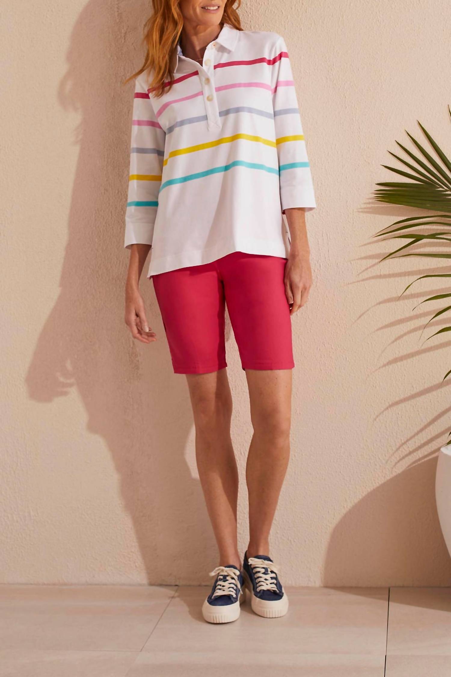Классическая рубашка на пуговицах, которая никогда не выйдет из моды. Представляем рубашку-поло Stripe от TRIBAL - яркое дополнение к вашему гардеробу в игривой малиновой полоске. Эта рубашка на пуговицах, изготовленная из высококачественной хлопковой смеси, имеет рукава три четверти и классический воротник, обеспечивающий идеальную посадку и комфорт. Застежка на пуговицы делает ее стильной и удобной. Уход за этой рубашкой не требует усилий: достаточно машинной стирки, и она останется незаменимой вещью на долгие сезоны.