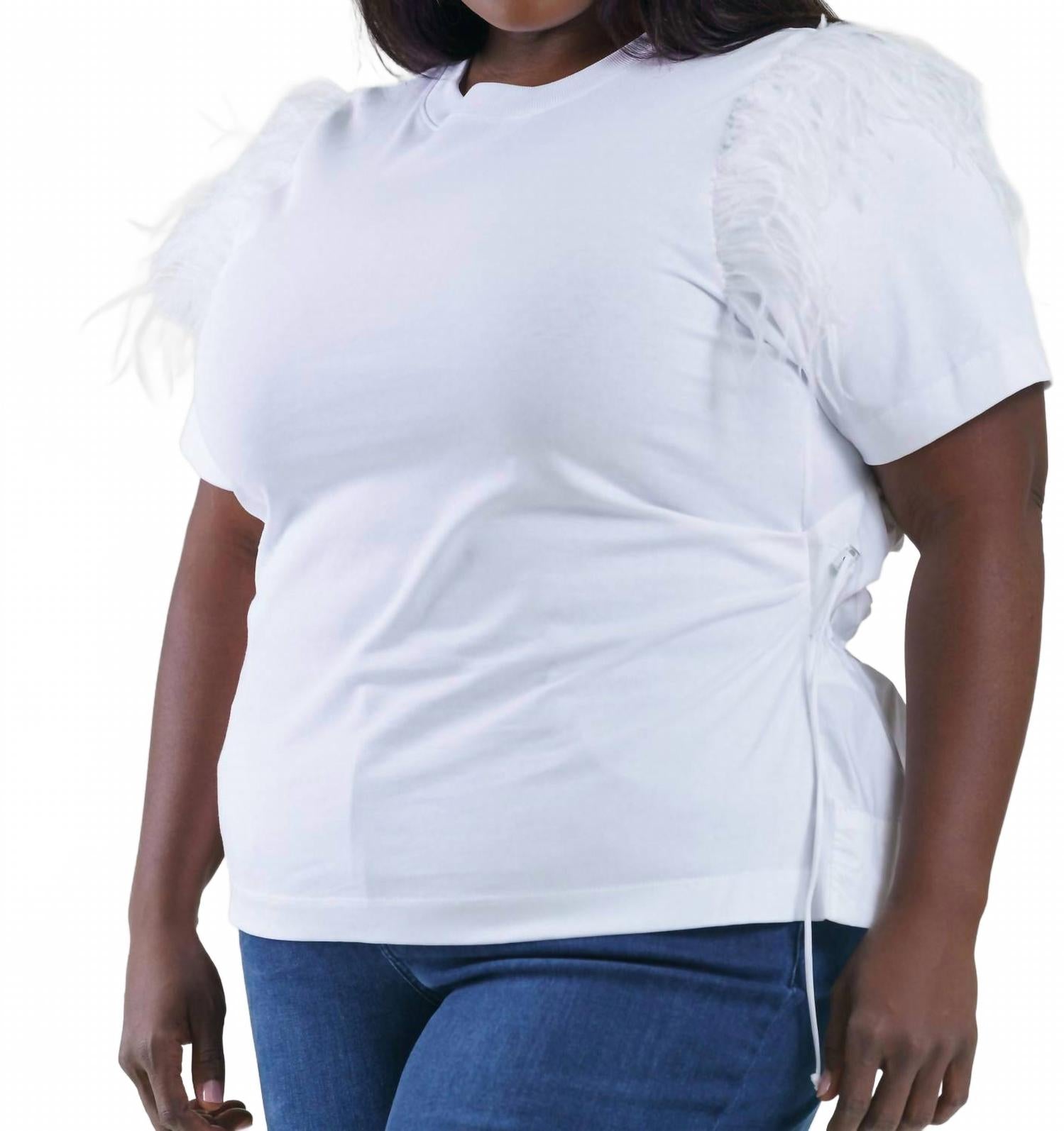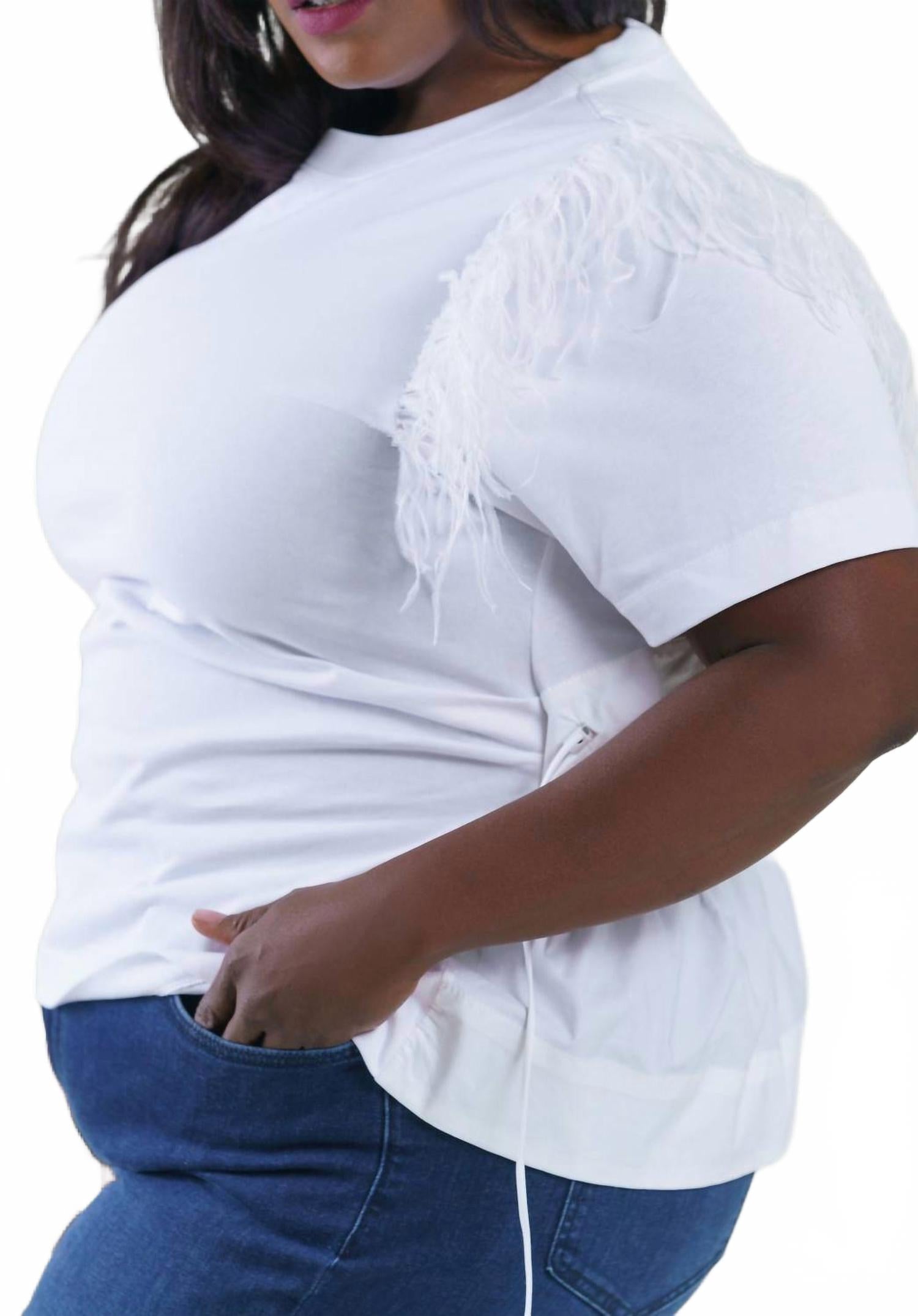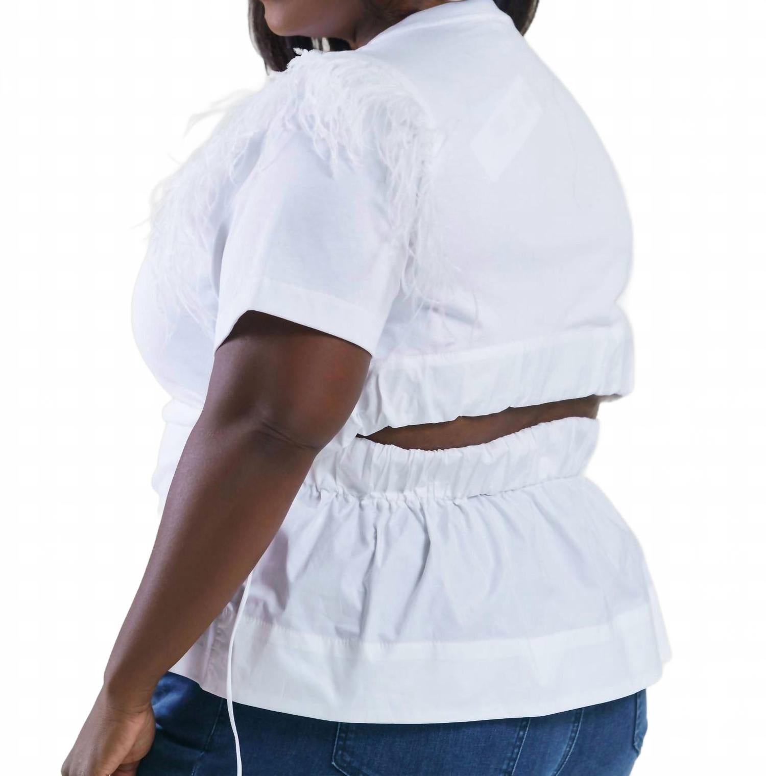 Лидия Топ с перьями - плюс сайз в белом Tanya Taylor