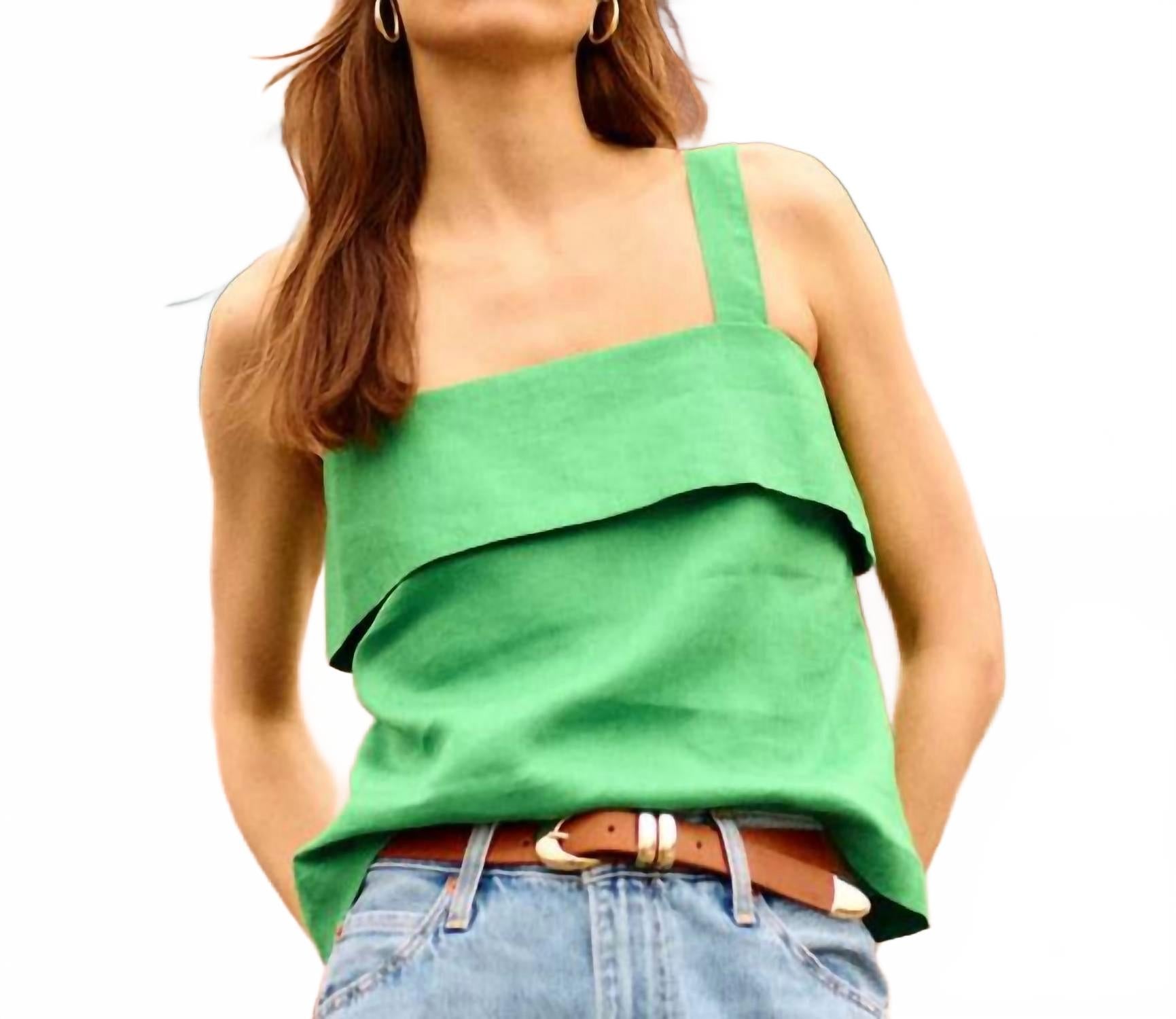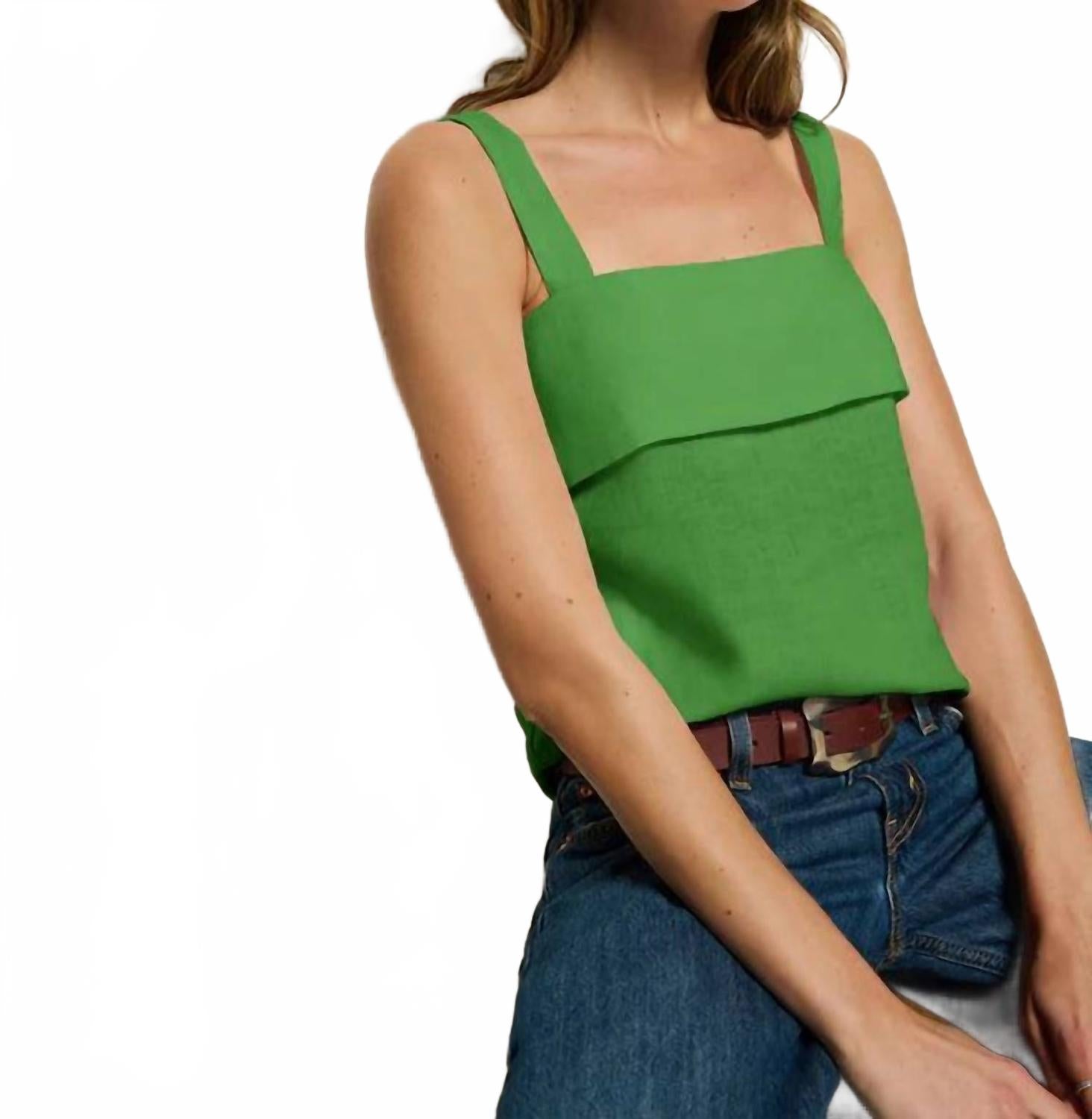 Идеальная майка для теплого времени года. Откройте для себя майку Misti от Nation LTD - идеальное сочетание комфорта и изысканности в ярком лаймовом оттенке. Эта майка без рукавов изготовлена ​​из 100% льна, легкого и дышащего, имеет стильный прямой силуэт и многослойную вставку на груди. Сзади застежка на молнию и крючок, что делает ее практичной и удобной для ношения с бюстгальтером. Уход за этой майкой прост: стирайте в стиральной машине, а сушить на воздухе рекомендуется для сохранения мягкости и поношенного вида.