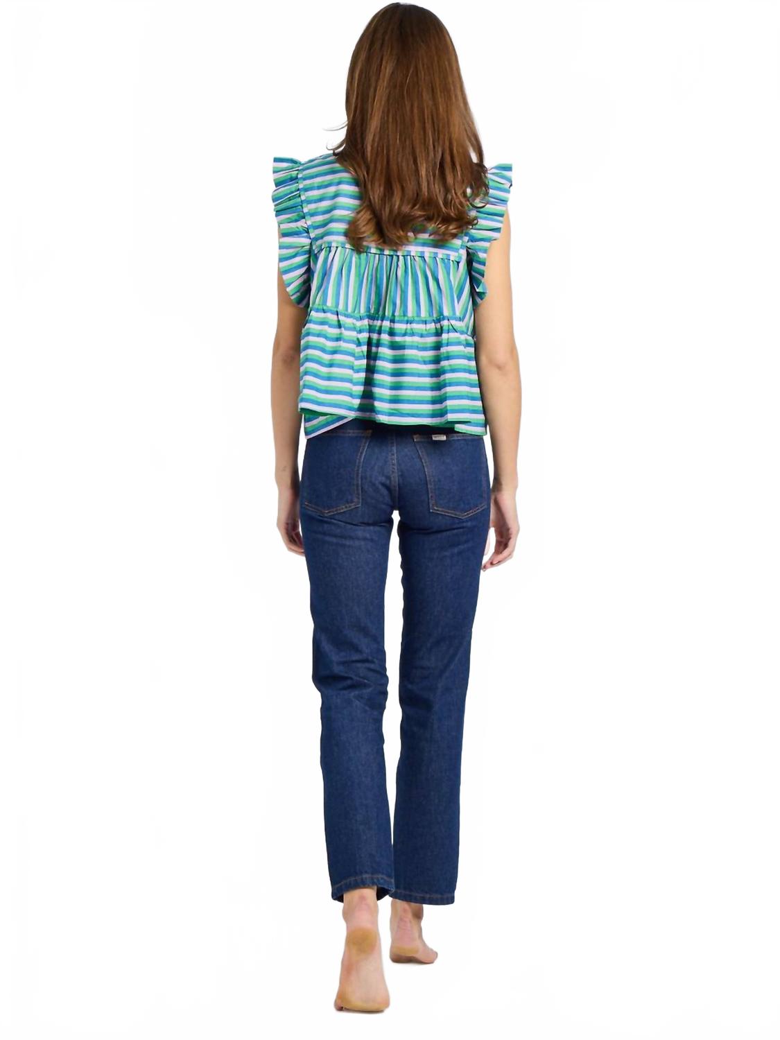 Представляем топ Chelsea от MILLE, идеально подходящий для летних музыкальных фестивалей благодаря своему элегантному полосатому узору. Эта блузка из 100% хлопка с рукавами-крылышками, слегка укороченной длины и широким оборкой по низу. Узкий квадратный вырез горловины дополнен завязками с кисточками и плиссированными оборками по линии плеча. Этот топ, удобный для ношения благодаря застежке-липучке, сочетает в себе стиль и комфорт в одном эффектном изделии.
