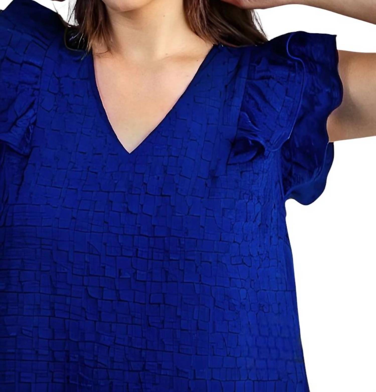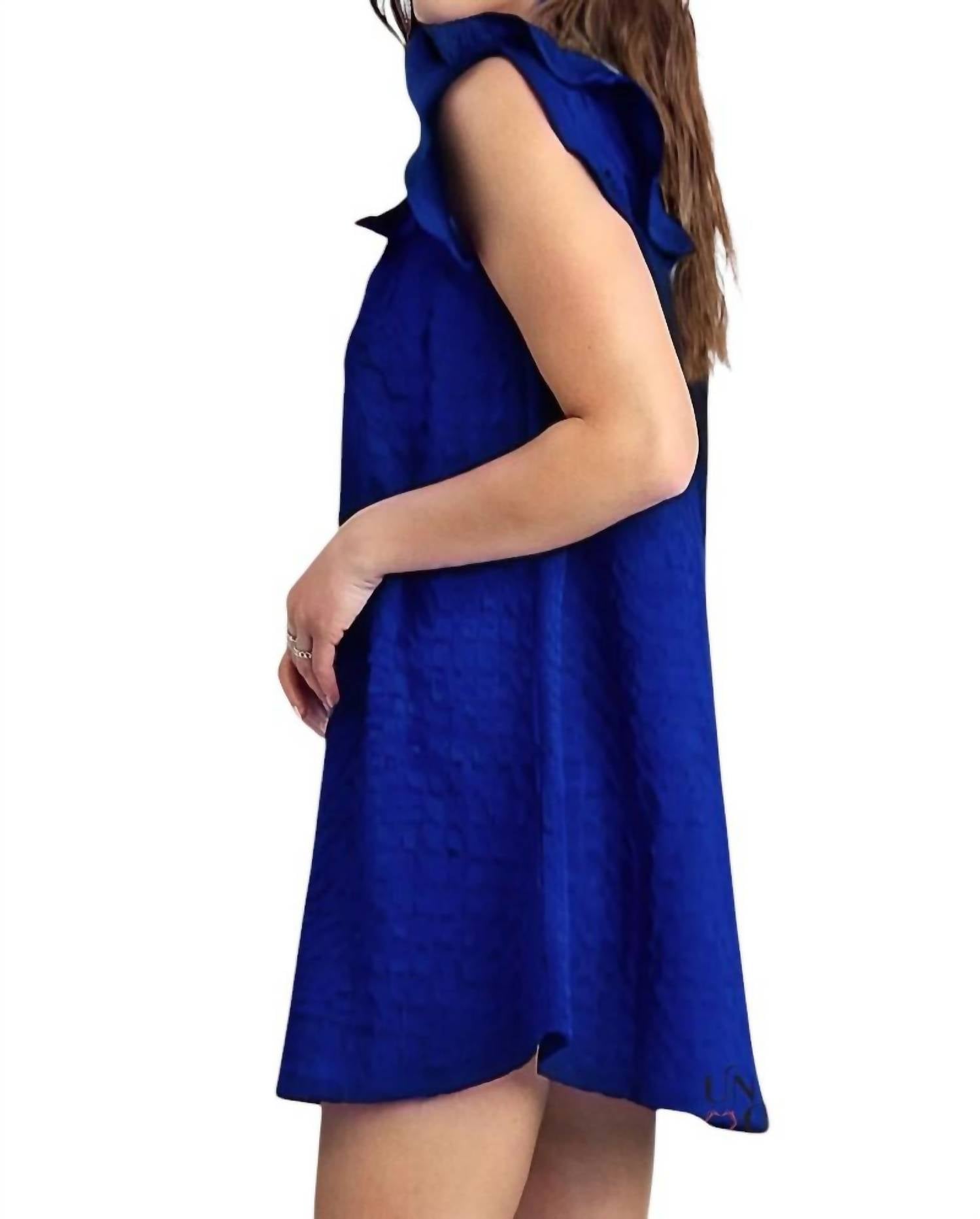 Представляем мини-платье Umgee Trish с рукавами-оборками в ярком королевском синем цвете - очаровательное дополнение к любому гардеробу. Это платье-трапеция без рукавов выполнено из комфортной смеси 95% хлопка и 5% спандекса. Текстурированная ткань с игривым V-образным вырезом и рукавами-оборками. Платье создано с учетом удобства и оснащено застежкой-липучкой для удобной посадки. Уход: ручная стирка в холодной воде, не отбеливать, сушка вручную, не подвергать химчистке.