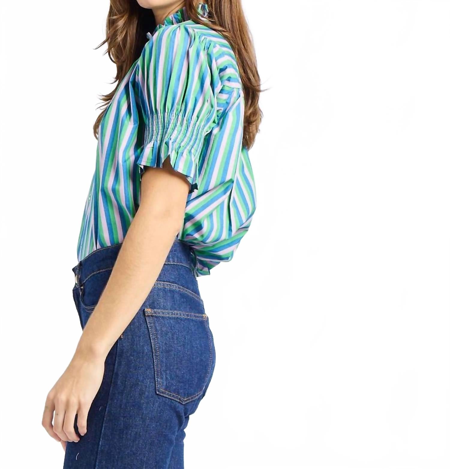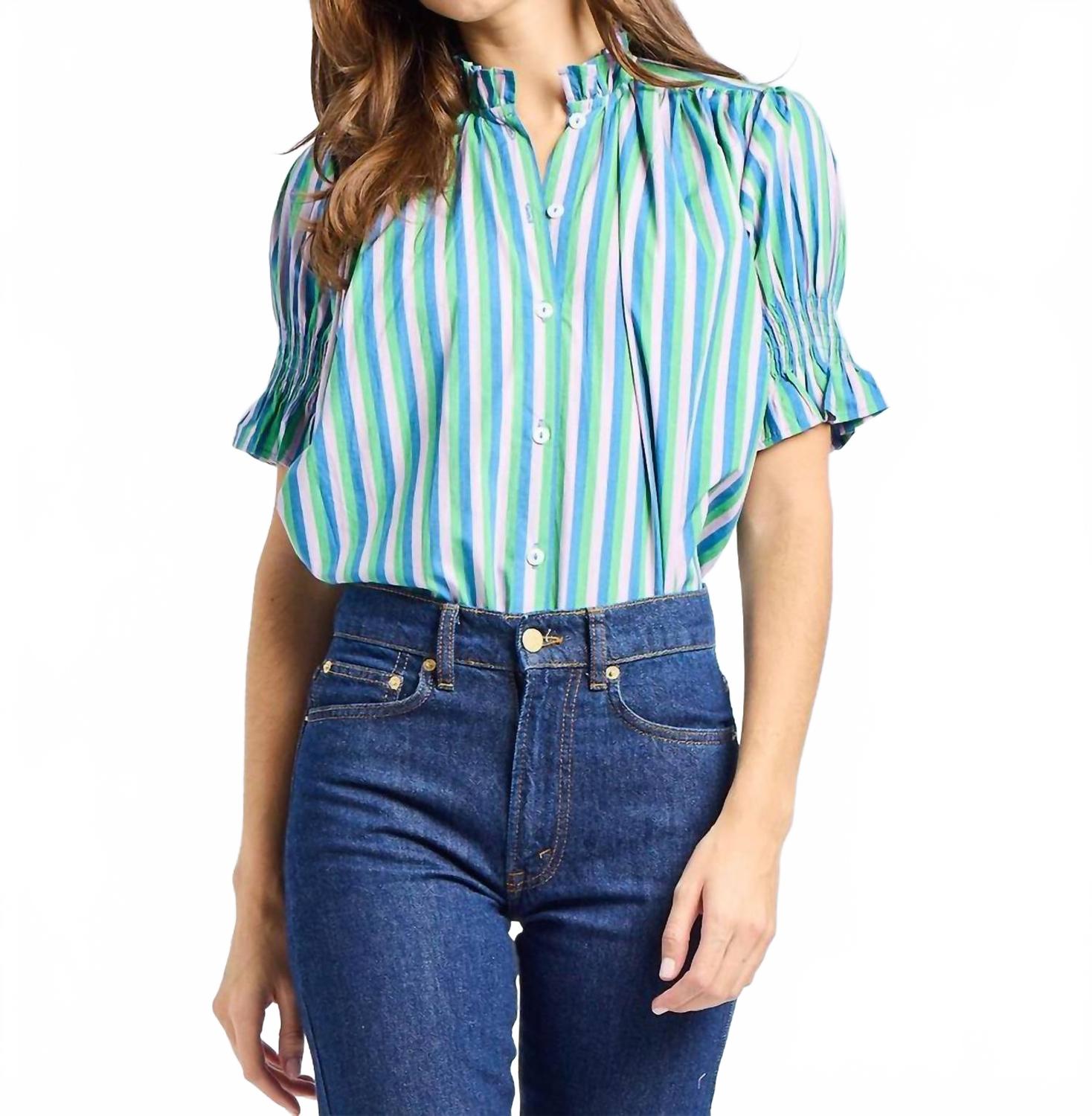 Добавьте изысканности в свой гардероб с блузой Marnie на пуговицах от MILLE, созданной для элегантности и комфорта. Эта стильная модель с короткими рукавами и присборенными эластичными манжетами дополнена изящной оборкой по воротнику. Изготовленная из 100% хлопка, она украшена очаровательным узором Printemps Stripe. Женская блузка застегивается на удобную пуговицу и идеально подходит для летних мероприятий, таких как церковные службы или День благодарения.