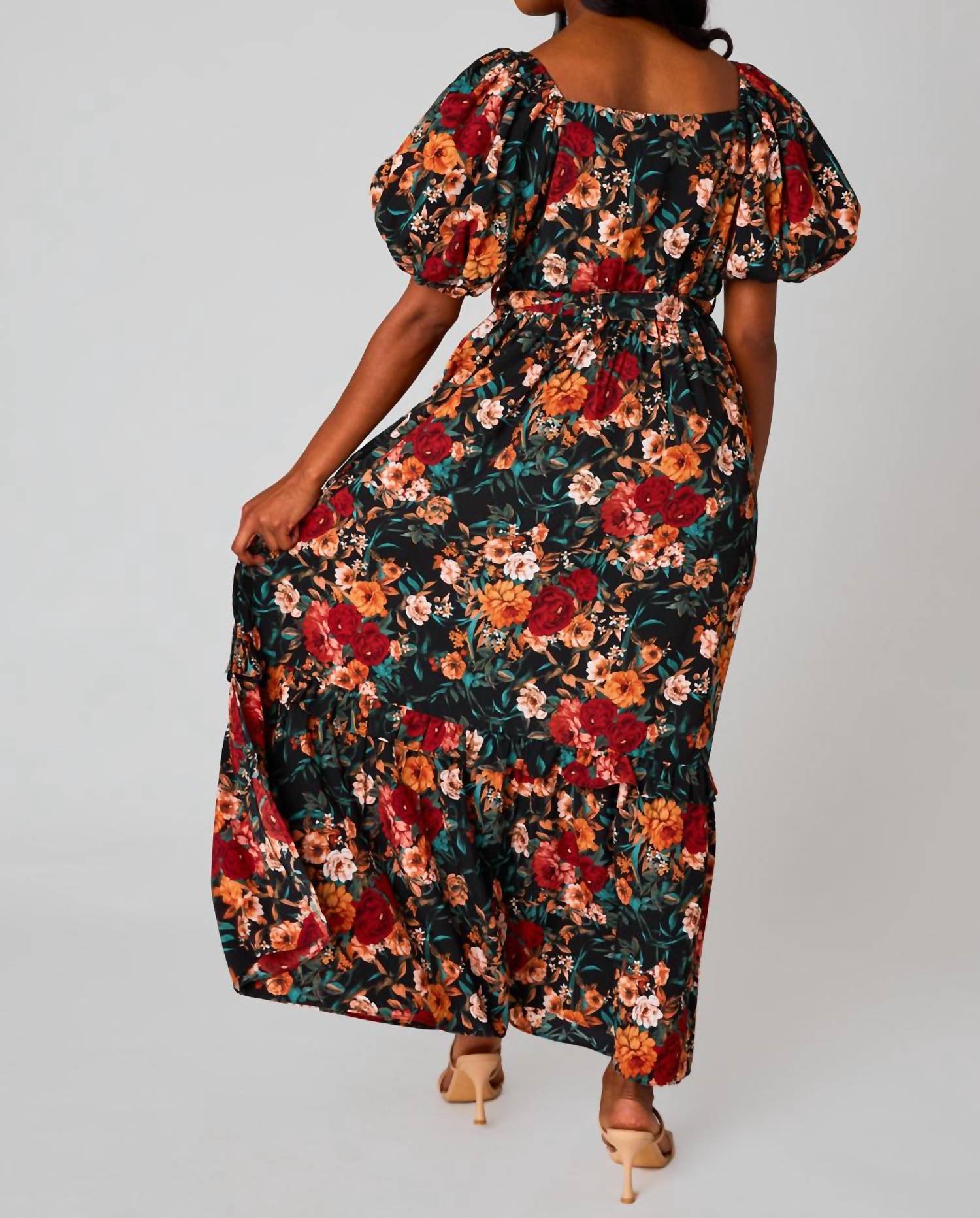 Платье макси, столь же милое, сколь и удобное. Представляем платье Viola Sydney от BUDDYLOVE - потрясающее макси с цветочным принтом, идеально подходящее для осенних мероприятий. Это очаровательное платье с короткими рукавами-фонариками и V-образным вырезом с лифом, регулируемым поясом и эластичной талией для приталенного силуэта. Платье из 100% полиэстера с шикарным черным цветочным узором имеет эффектный боковой разрез и длину 143 см. Благодаря удобной застежке-липучке это платье станет изюминкой любого гардероба.