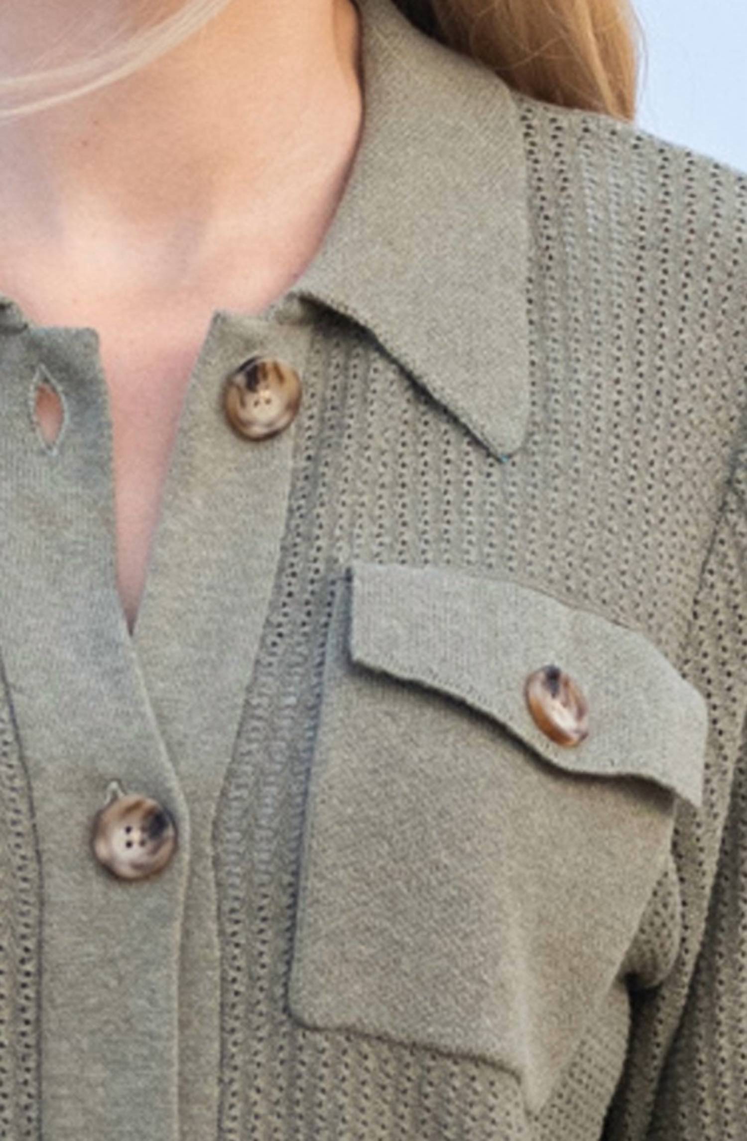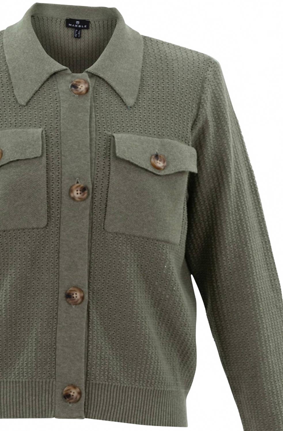 Накиньте этот очаровательный кардиган поверх любой майки или топа. Встречайте кардиган перфорированной вязки MARBLE - изящный кардиган цвета хаки с длинными рукавами, обеспечивающий комфорт. Этот потрясающий кардиган тонкой вязки из 100% хлопка имеет классический крой и текстурированный узор с контрастными пуговицами, придающими ему элегантность. Продуманный дизайн включает воротник и функциональные карманы. Застежка на пуговицы обеспечивает удобство, а машинная стирка не составит труда. Длина изделия - 20,87 дюйма.
