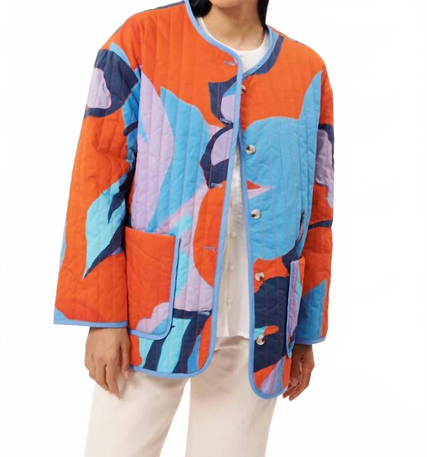 Украсьте свой летний гардероб курткой Annae от FRNCH - шикарным вариантом для прохладной погоды. Эта куртка с длинными рукавами и ярким узором «Движущиеся цветы» имеет стеганый эффект, круглый вырез горловины и большие карманы для дополнительной функциональности. Изготовленная из 100% хлопка, она имеет прямой, широкий крой для свободной посадки и застежку на пуговицы. Чтобы сохранить ее привлекательность, рекомендуется только химчистка.