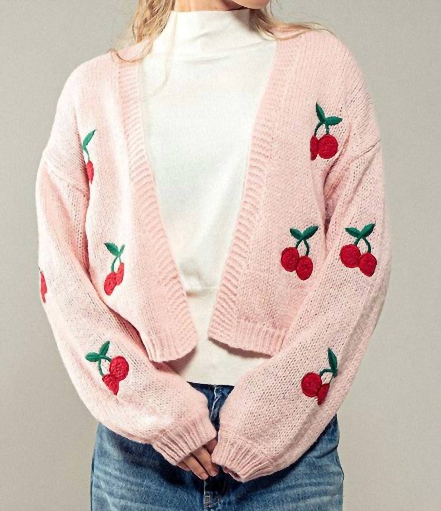 Накиньте этот очаровательный кардиган поверх любой майки или топа. Дополните свой образ кардиганом Cherry Cardigan от Trend - Notes, игривой вещью очаровательного розового цвета. Этот женский кардиган с длинными рукавами и V-образным вырезом украшен очаровательной вышивкой в ​​виде вишен. Изготовленный из мягкого трикотажа (100% полиэстер), он дополнен модной ребристой отделкой для дополнительной фактуры. Этот кардиган идеально подходит для оригинального дополнения к гардеробу и добавит нотку веселья любому образу.