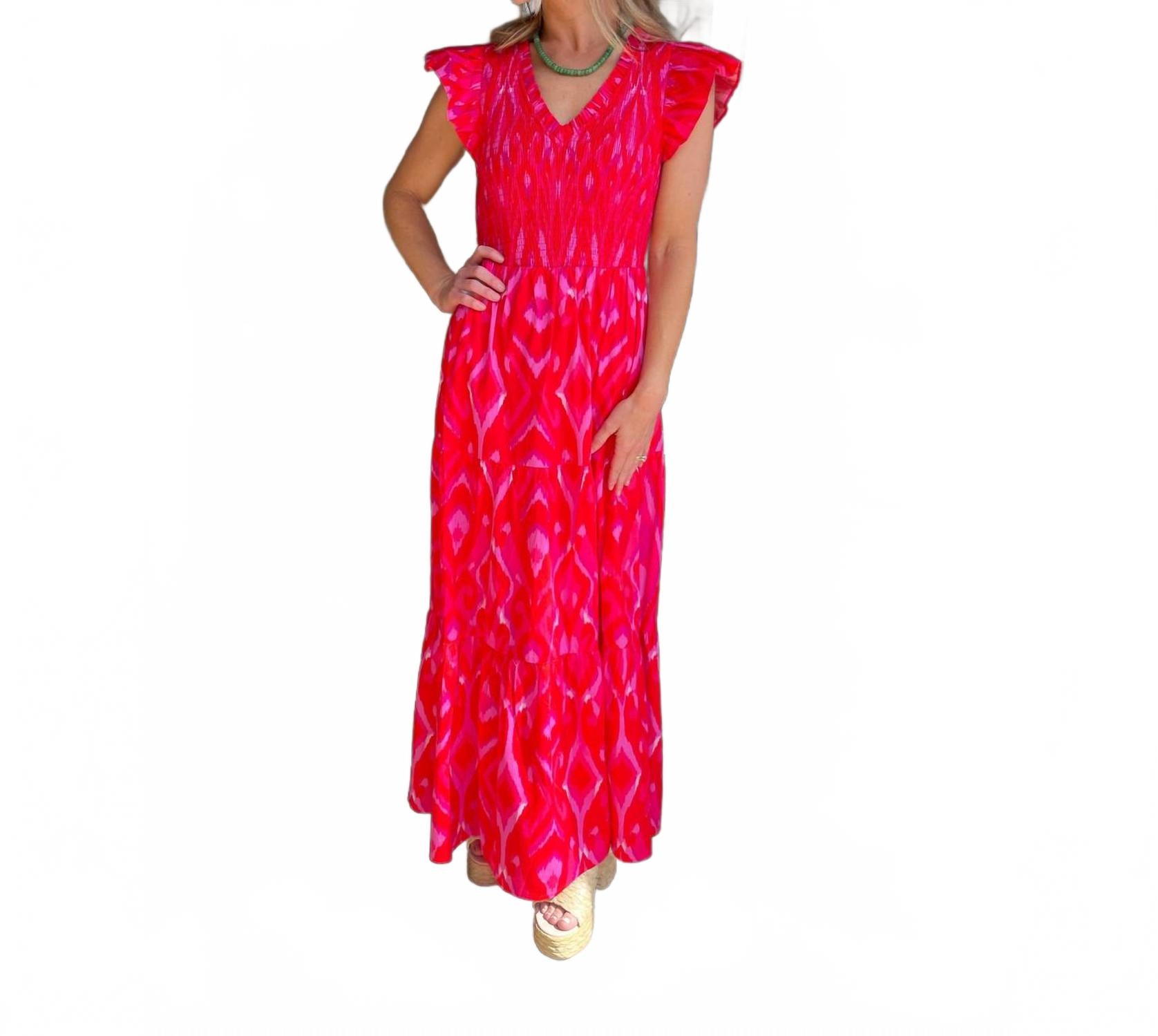 Дополните образ любимыми сандалиями, чтобы создать непринужденный и элегантный образ. Окунитесь в летний стиль с платьем макси Blevin от SUGARLIPS - ярким дополнением к вашему гардеробу в эффектном красно-розовом цвете. Это миди-платье с узором, короткими рукавами и А-силуэтом, присборенным лифом и многоярусной юбкой идеально подходит для пляжного отдыха. Платье выполнено из приятного хлопка, имеет элегантный V-образный вырез и удобную застежку-липучку. Легко воплощайте стиль бохо-шик в любой повседневной ситуации.