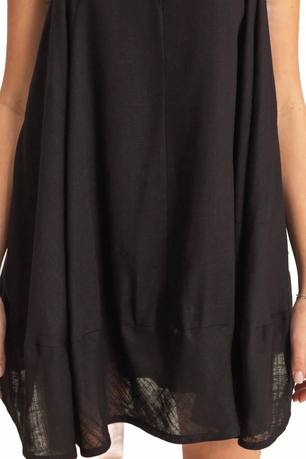 Дополните свой весенний гардероб шикарным черным мини-платьем, которое идеально подойдет для отдыха в стиле бохо-шик. Платье-комбинация А-силуэта с изящными бретельками-спагетти и квадратным вырезом, плавно переходящим в короткий подол выше колена. Изготовлено из смеси легкого рами и фирменного воздушного органического хлопка Azalea. Обеспечивает комфорт и стиль. Застежка на пуговицы. Ручная стирка. Идеально подходит для отпуска, воплощая непринужденную изысканность.