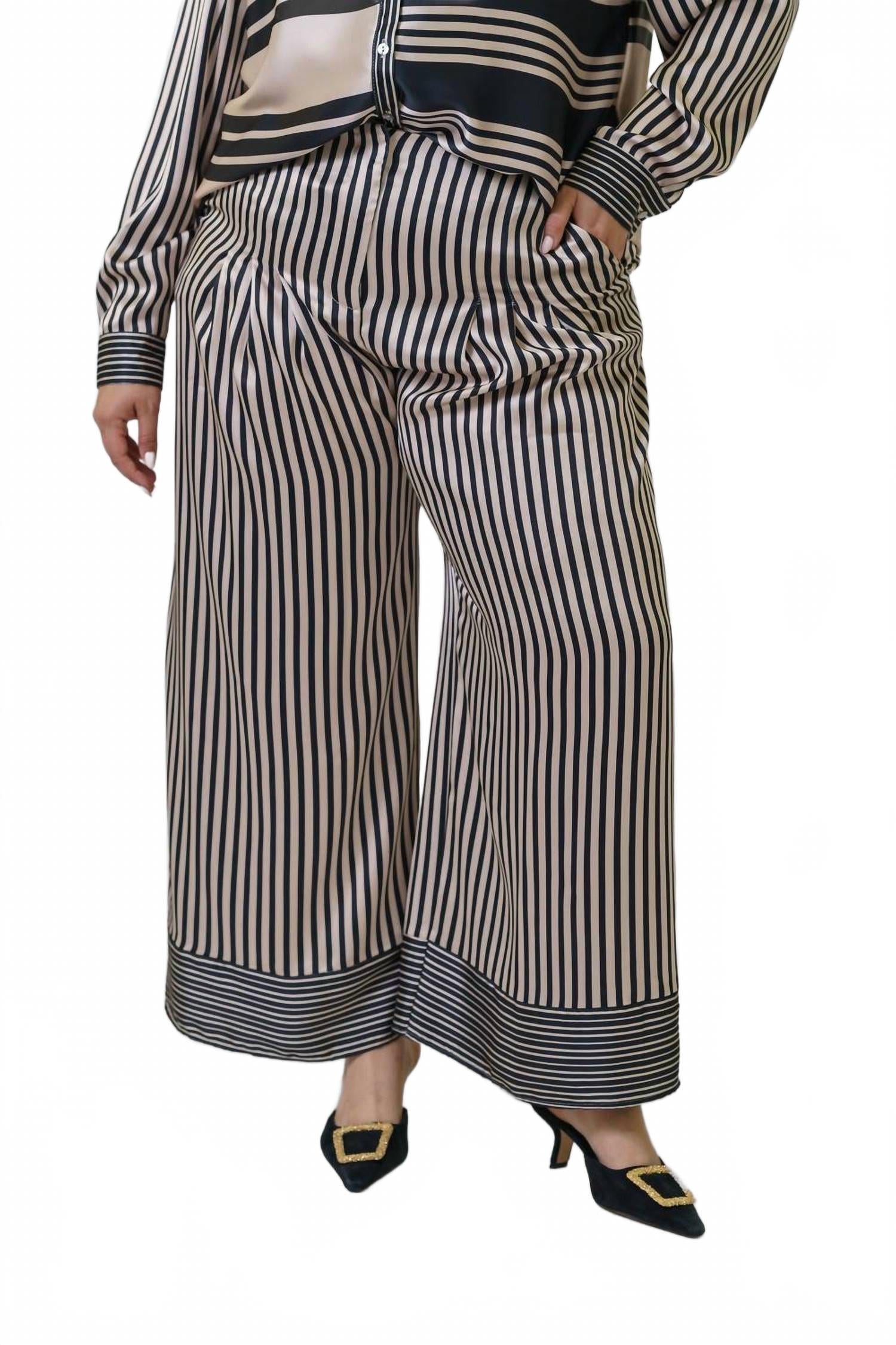 Представляем брюки Isla в однотонную полоску от Never Fully Dressed, созданные для свободного кроя с ультраширокими штанинами, которые обеспечивают свободу движений. Эти брюки из 70% хлопка, 27% нейлона и 3% спандекса с узором в черно-белую полоску отличаются великолепной посадкой по талии, застежкой-молнией спереди и практичными карманами. Контрастные полоски на подоле создают дополнительный акцент и идеально сочетаются с обувью на каблуках. Инструкция по уходу: машинная стирка и сушка в стиральной машине.