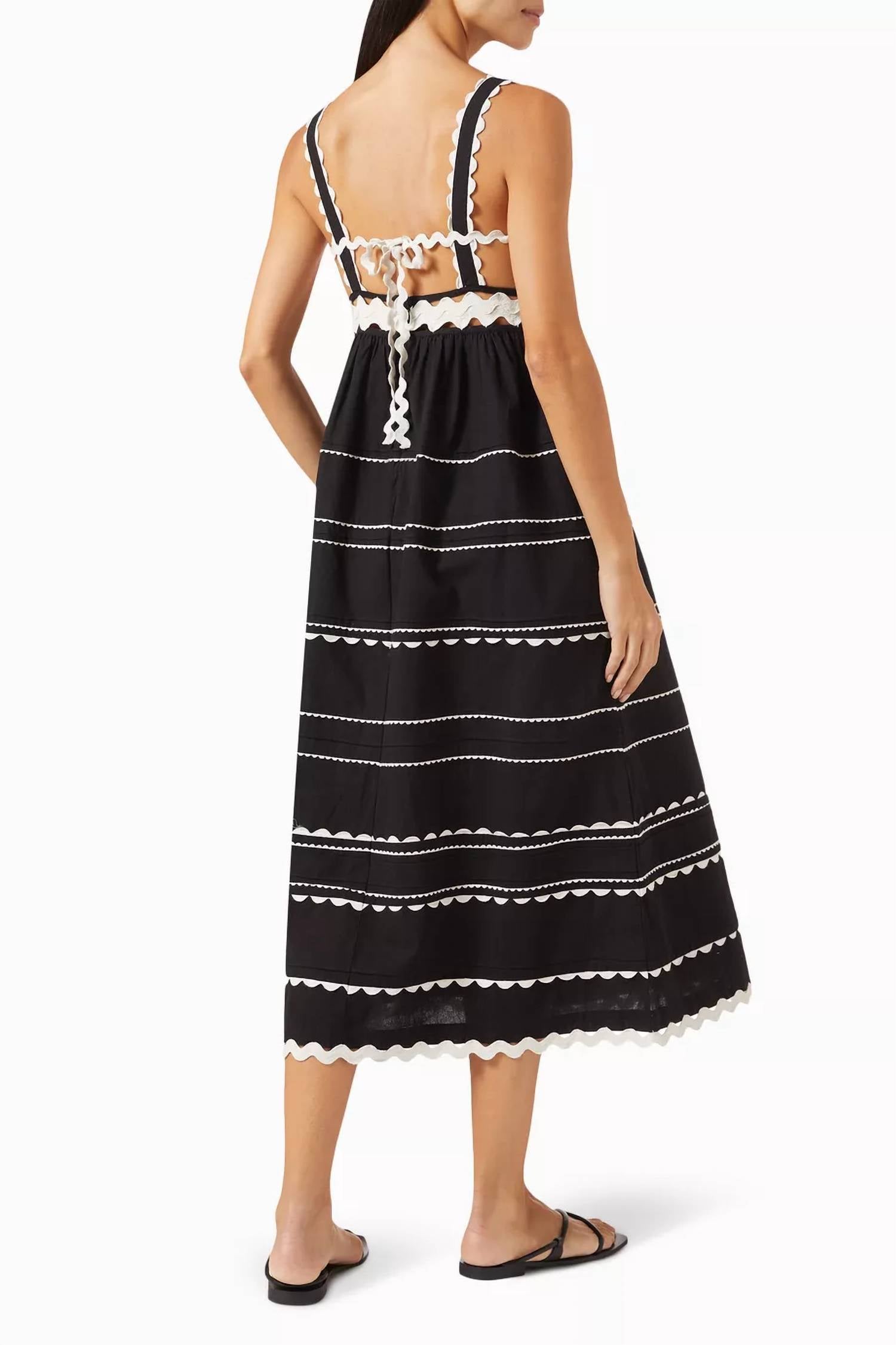 Откройте для себя непринужденную элегантность в черно-белом платье миди. Платье украшено классическим полосатым узором и имеет изысканный V-образный вырез. Изготовлено из приятного хлопка. Без рукавов и завышенной талией воплощает стиль бохо-шик. Удобная застежка на липучке, а также практичные карманы. Для сохранения безупречного внешнего вида рекомендуется химчистка. Идеально подходит для женщин, которые хотят выглядеть стильно на любой праздничной вечеринке.