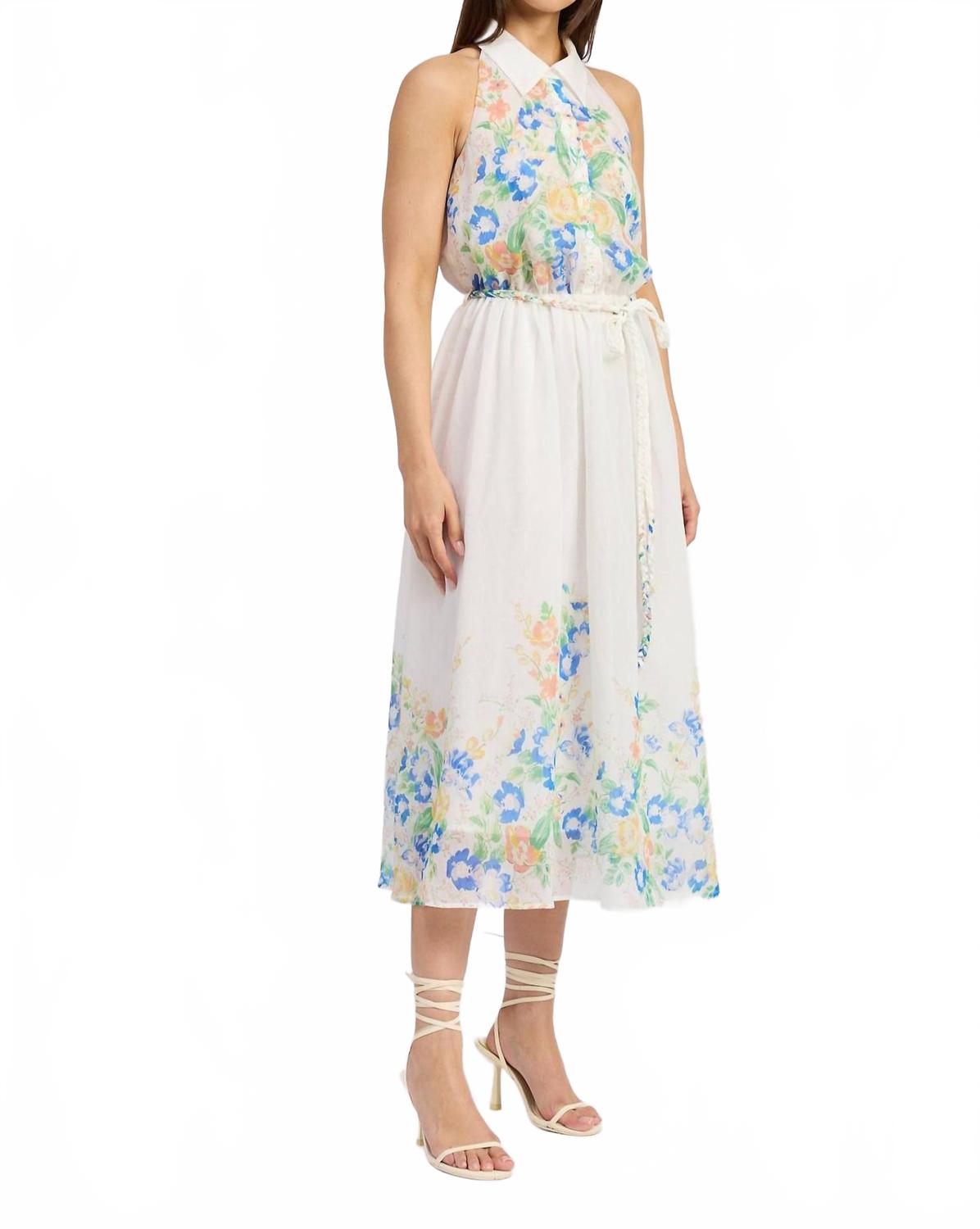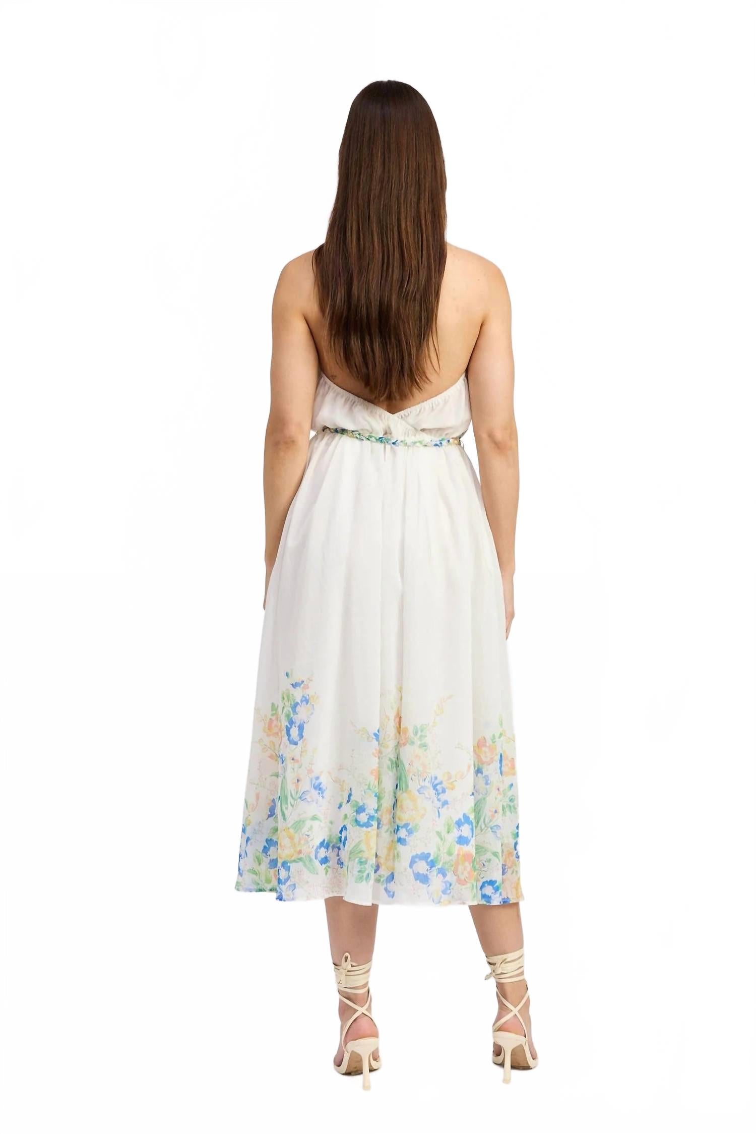 Платье идеальной длины существует. Ощутите очарование бохо-шика в платье-миди En Saison Collared Halter с очаровательным бело-голубым цветочным узором. Это платье А-силуэта без рукавов выполнено из 100% лиоцелла с хлопковой подкладкой, что обеспечит комфорт и элегантность во время весенних каникул. Платье импортируется с застежкой-липучкой, имеет воротник-стойку и легко стирается вручную. Этот универсальный миди-фасон идеально подходит для самых разных мероприятий и станет незаменимым дополнением вашего гардероба.
