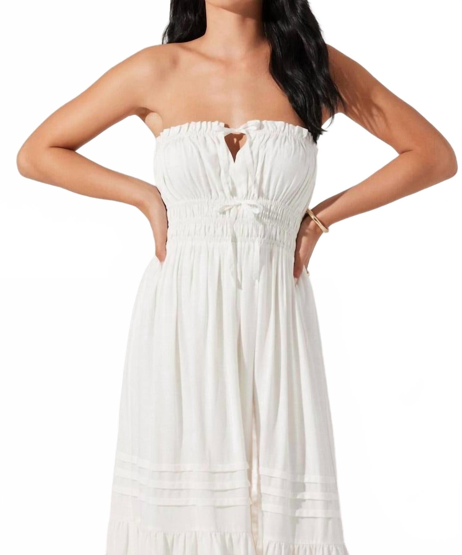 Просто добавьте шлепанцы или мюли, и все готово. Ощутите элегантность в платье Aubrie Tie Front от ASTR, идеально подходящем для минималистичных весенних вечеров. Это платье миди без бретелек с присборенным кроем имеет элегантную застежку-молнию с вырезом-каплей, подчеркнутым шнурком-кулиской. Платье изготовлено из роскошной смеси вискозы (70% вискозы и 30% льна), имеет длину по центру спереди 102 см и полностью на подкладке для дополнительного комфорта. Для сохранения идеального состояния рекомендуется химчистка.