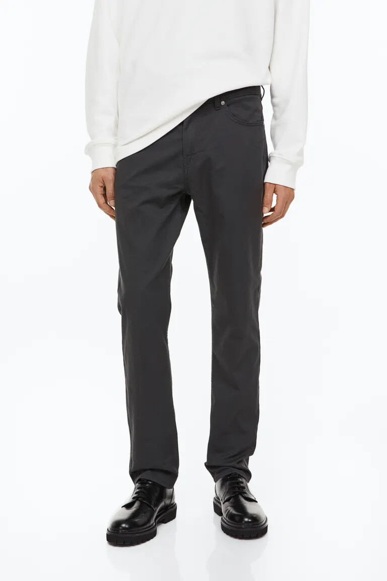 Брюки Slim Fit из хлопкового твила H&M, темно-серый