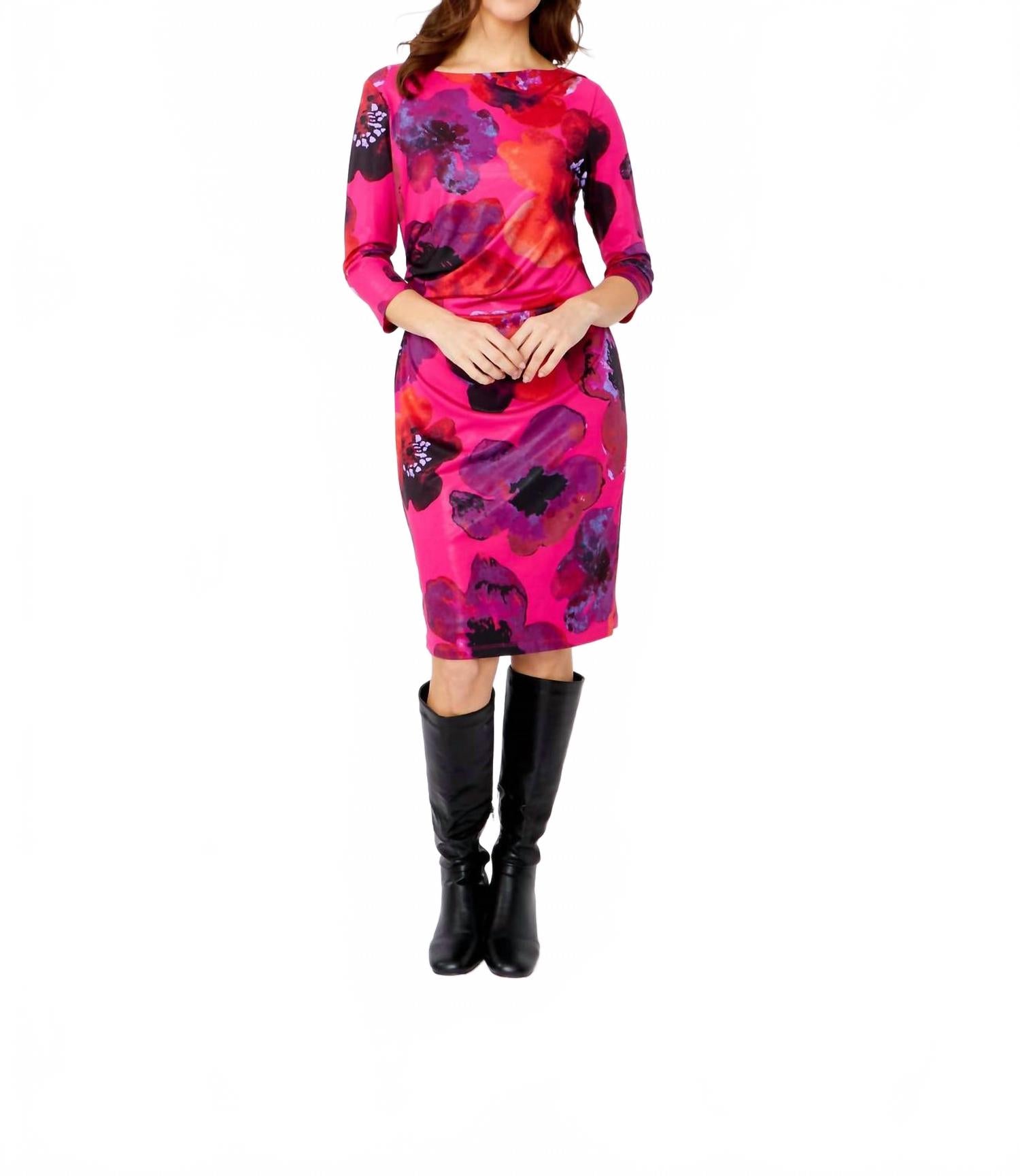 Платье миди настолько универсально, что ваши варианты его ношения безграничны. Представляем платье-футляр длиной до колена от Frank Lyman в цвете фуксии и фиолетового, которое добавит яркую элегантность вашему летнему гардеробу. Это платье с рукавами три четверти и удобным прямым кроем идеально подойдет для любого случая. Изготовлено из смеси 95% полиэстера и 5% эластана, застегивается на молнию для удобства надевания. Длина платья - 40 дюймов (101 см), уход за ним прост: ручная стирка и сушка в разложенном виде.