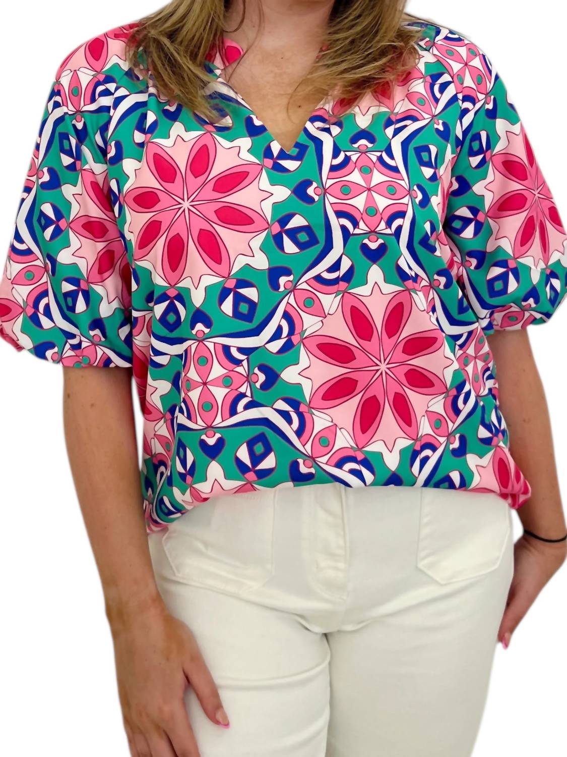 Создайте динамичный образ с топом Kay Puff Sleeve Top от Jade - незаменимым аксессуаром для игривого, но в то же время изысканного образа. Эта блузка с V-образным вырезом и рукавами-буфами длиной до локтя украшена ярким абстрактным узором в стиле бохо-шик. Топ полностью изготовлен из 100% полиэстера и оснащен застежкой-липучкой для удобства надевания. Идеально подходит для весенних помолвок и впишется в любой гардероб, где хочется ярких красок и стиля.