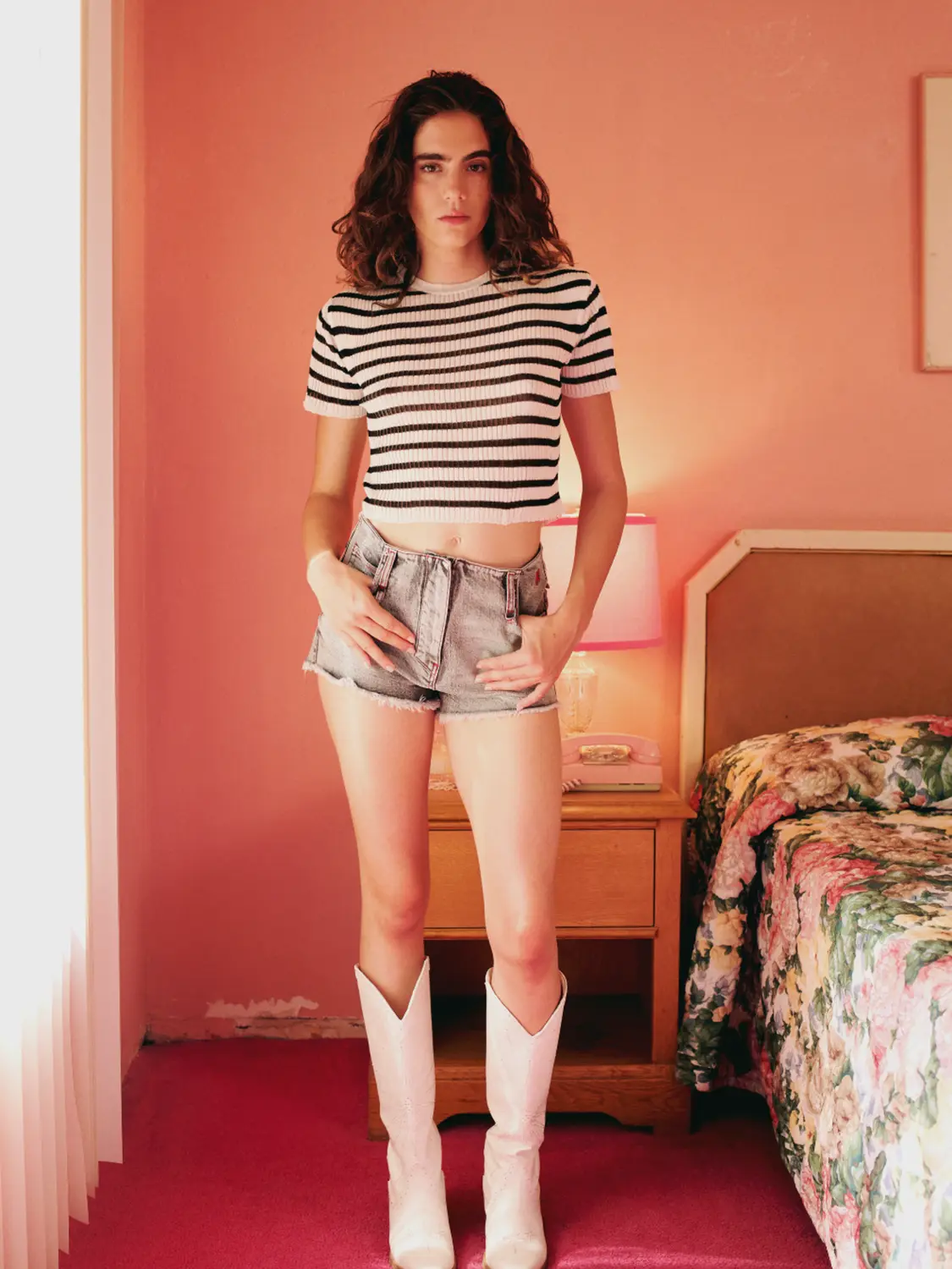 Эти шорты с потертостями и ультракоротким кроем создают модный и смелый образ. Изготовленные из денима, они обеспечивают комфортную посадку и идеально подойдут для создания яркого образа в летнем гардеробе.