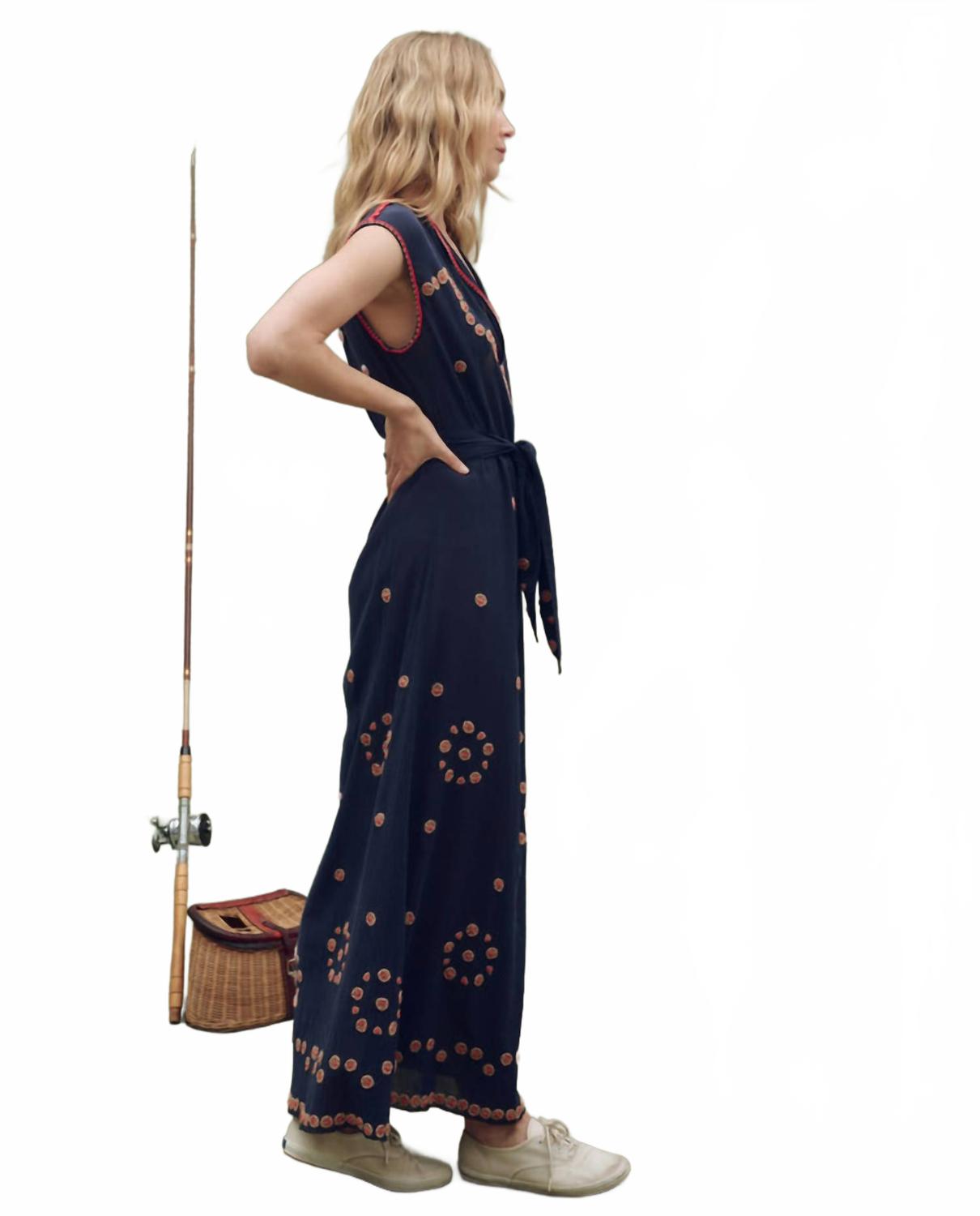 Платье макси, столь же милое, сколь и удобное. Представляем платье Beaded Corridor Dress от THE GREAT - платье макси в винтажном стиле, идеально подходящее для вечерних мероприятий. Это темно-синее платье из хлопковой смеси с короткими рукавами и соблазнительным глубоким V-образным вырезом. Платье А-силуэта с заниженной талией украшено изысканной ручной вышивкой бисером и вышитыми веревкой цветами на полупрозрачном хлопке. Состав: 62% хлопок, 38% купро. Застежка: надевается. Уход: только сухая чистка. Импортное.