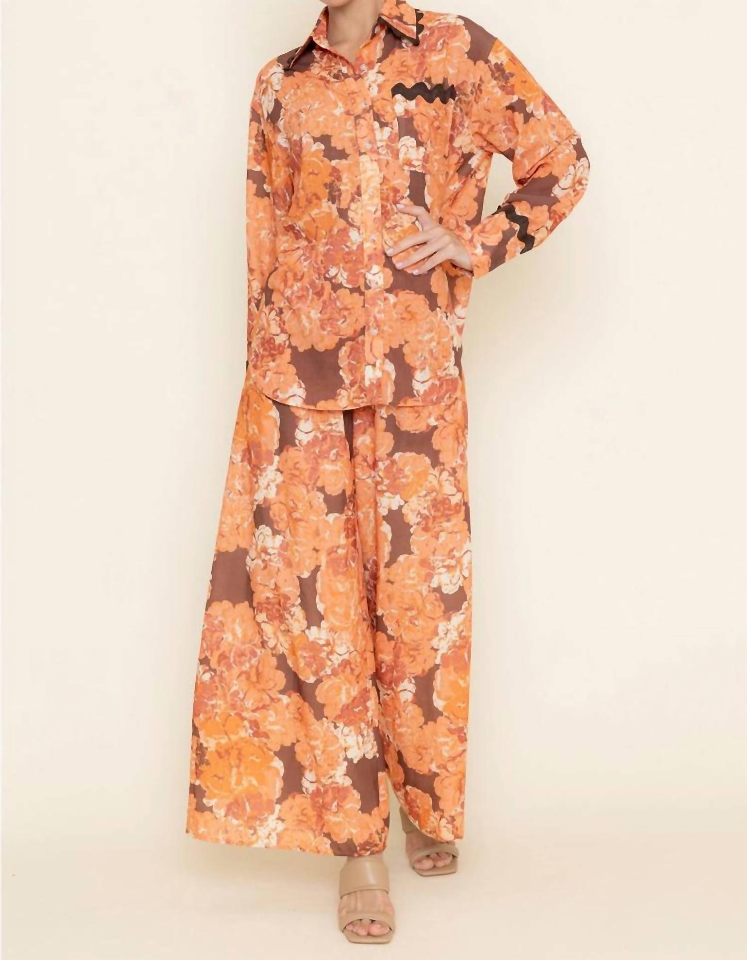 Представляем брюки Brooke от Fore, идеально подходящие для создания яркого образа благодаря крупному оранжевому цветочному принту. Эти брюки свободного кроя с высокой талией на резинке и боковыми карманами обеспечивают максимальный комфорт и стиль. Изготовленные из 100% полиэстера и дополненные слоем полиэстера, эти брюки идеально подойдут для пляжа или любого мероприятия в стиле бохо-шик. Сделанные в Китае, они оснащены застежкой-липучкой для удобства ношения. Инструкция по уходу: ручная стирка в холодной воде.