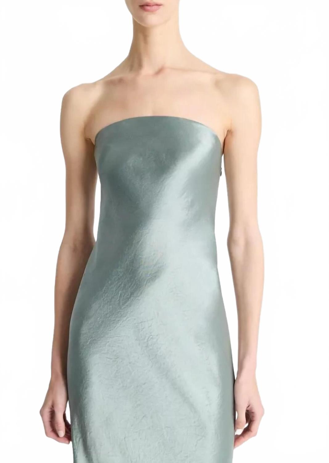 Платье макси, столь же милое, сколь и удобное. Встречайте атласное платье макси без бретелек от Vince - элегантное изделие цвета шалфея, созданное для вневременного стиля. Платье без бретелек, с элегантным силуэтом-комбинацией, длиной 136 см - изысканный и универсальный вариант для любого случая. Платье изготовлено из 100% ацетата Naia, легкое, дышащее и экологически чистое (материал импортируется из Японии). Застежка - натяжная. Уход за платьем простой: ручная стирка, сушка на веревке и химчистка (по желанию).