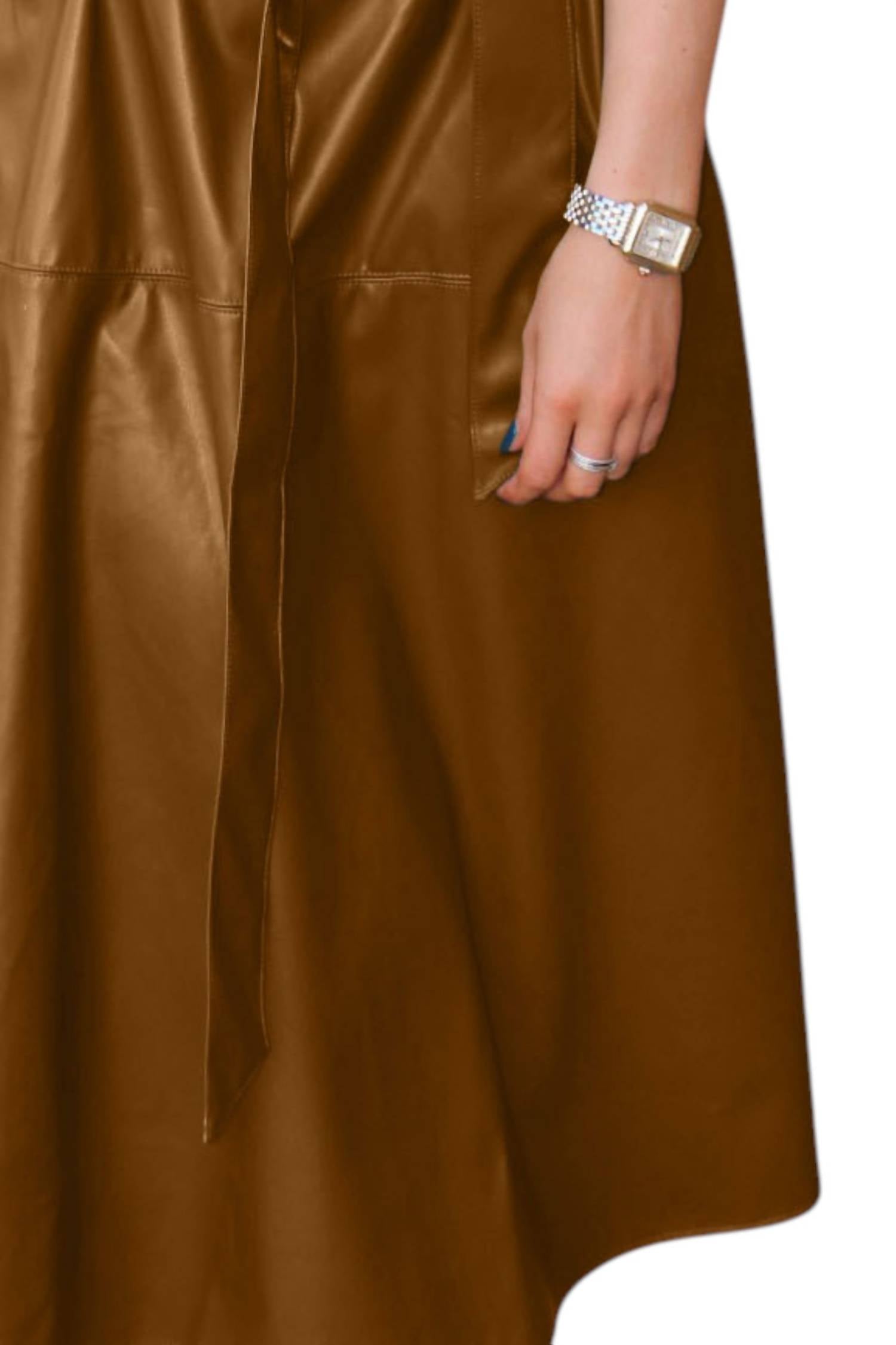 Подчеркните свой стиль с юбкой-миди Brynn Pleather от Jade, представленной в изысканном коричневом оттенке, который привнесет выразительность. Эта модная юбка из 100% полиэстера с однотонным узором, дополнительным ремнем для дополнительной универсальности и удобными карманами идеально подойдет для званого ужина в честь Дня благодарения, добавив нотку моды 90-х любому весеннему событию. На модели размер S.