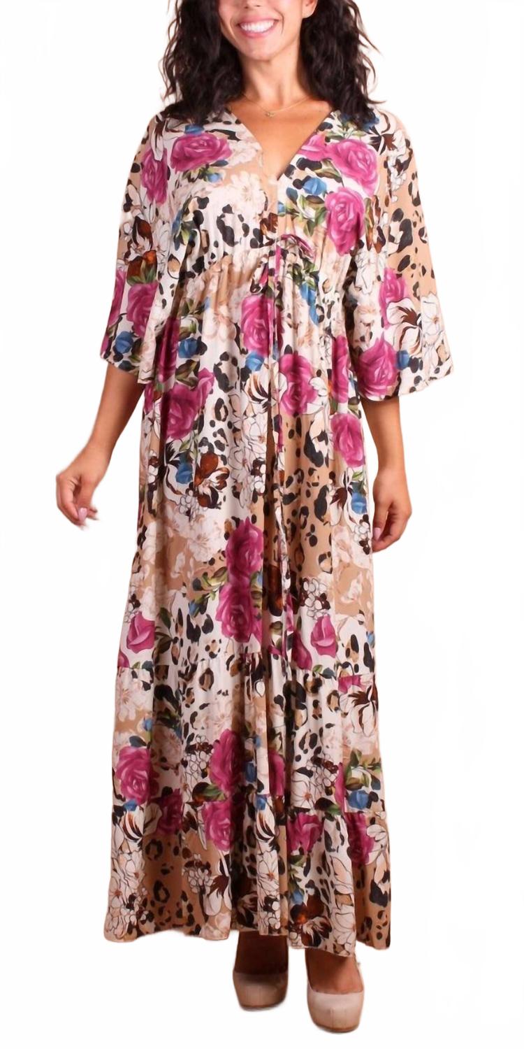 Леопард Роуз макси платье в кремовом цвете GIGI MODA
