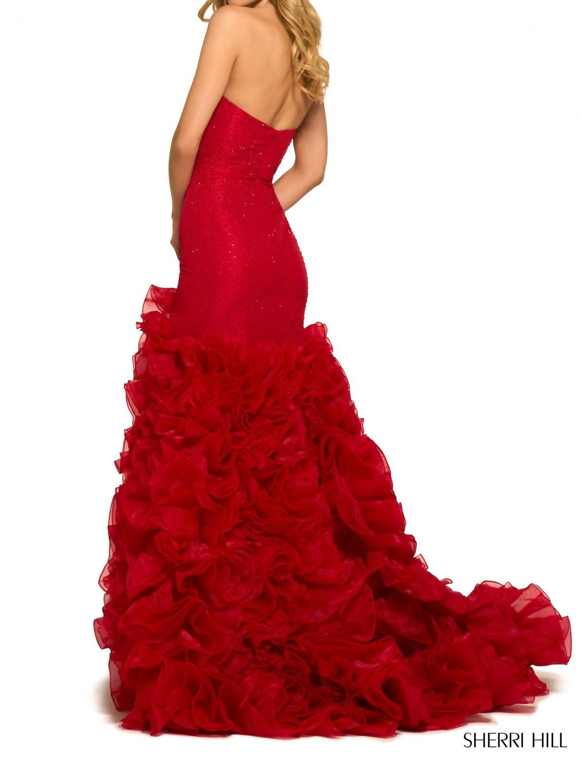 Привлеките всеобщее внимание в самом очаровательном и изысканном вечернем платье. Украсьте свой выпускной образ платьем силуэта «русалка» из тафты без бретелек - 55492 от Sherri Hill. Это потрясающее платье яркого красного цвета, созданное для того, чтобы произвести впечатление. Это платье силуэта «русалка» без бретелек с юбкой из тюля с оборками и высоким разрезом для создания драматичного эффекта. Застежка на молнию обеспечивает безупречную посадку. Это платье с идеальным рисунком создано для особых случаев.