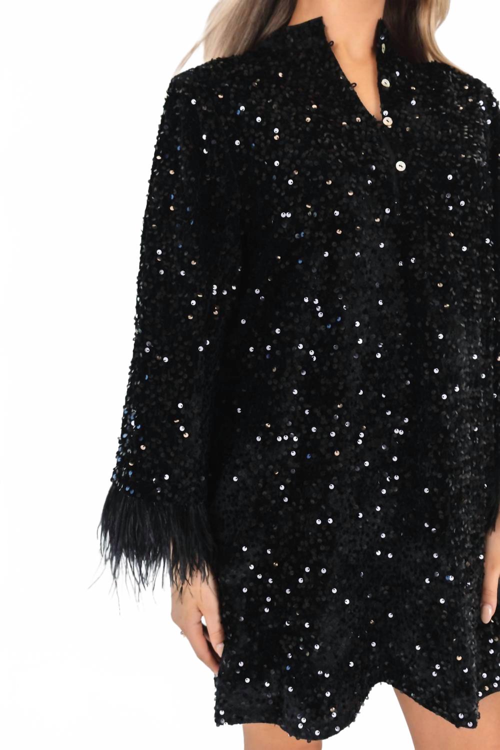 Добавьте изысканности вашему вечернему наряду. Великолепное мини-платье идеально подходит для новогодних мероприятий. Платье классического черного цвета с длинными рукавами, V-образным вырезом и застежкой-липучкой для удобства. Изготовлено из 100% полиэстера. Платье украшено эффектными пайетками, подкладкой для комфорта и элегантным узором в горошек. Чтобы сохранить элегантность, рекомендуется сдавать платье в химчистку и сушить на горизонтальной поверхности.