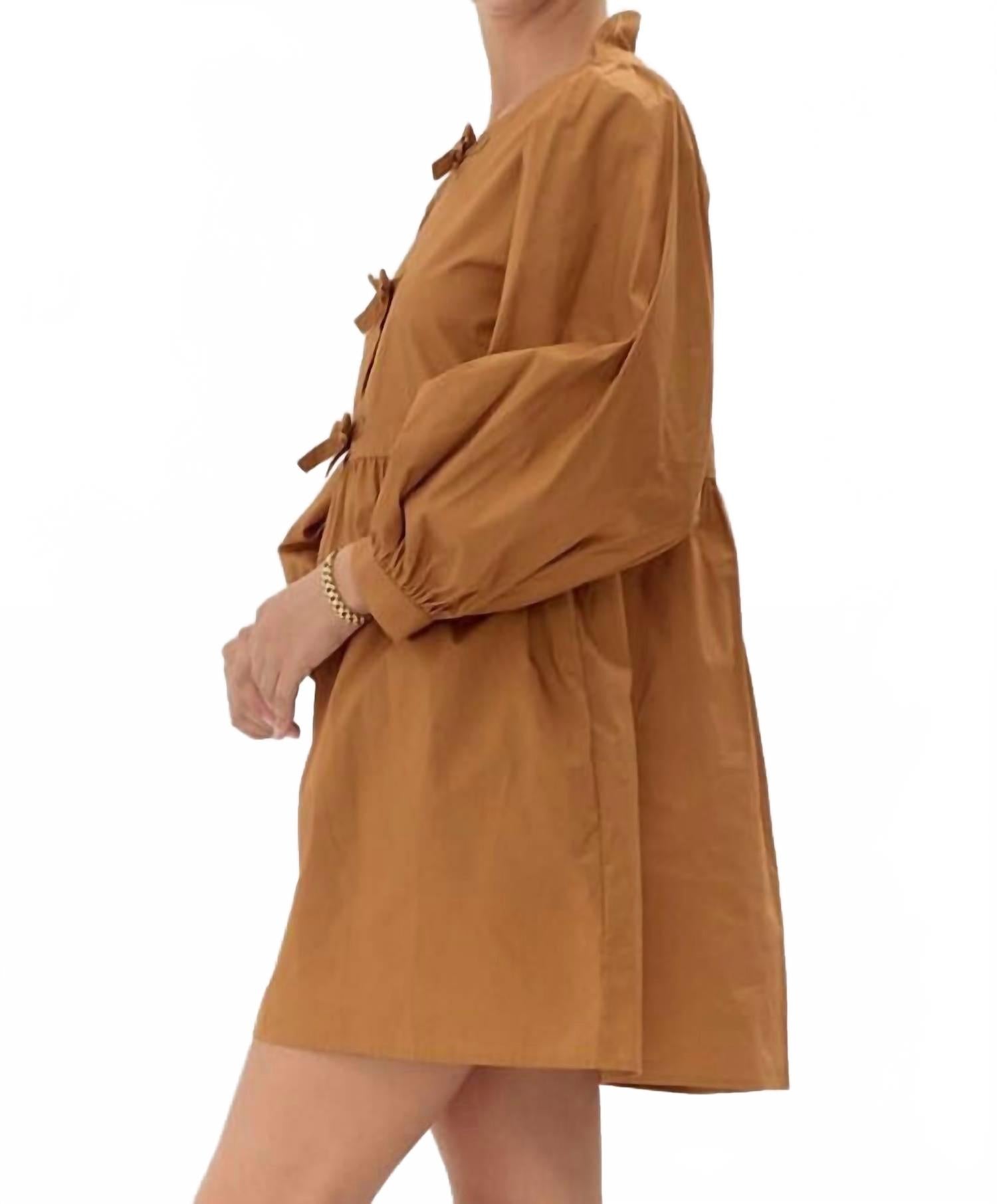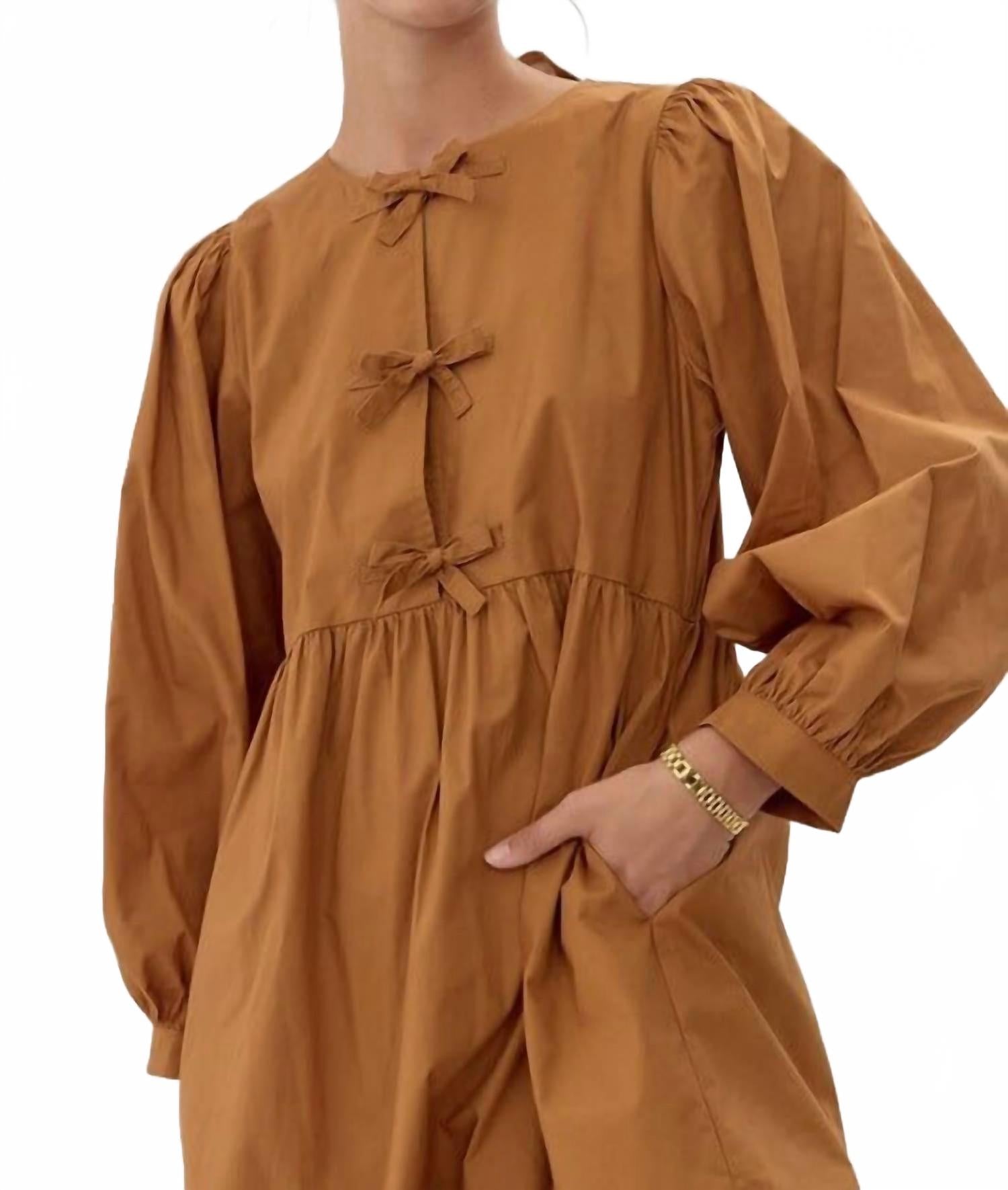 Представляем платье Felicity с длинными рукавами от Jodifl - шикарное изделие насыщенного бежевого цвета, идеально подходящее для минималистичного стиля. Платье изготовлено из 100% хлопка, имеет длинные рукава в стиле «крестьянин» с манжетами-резинками и стильный круглый вырез горловины с бантом, что добавляет ему очарования. Практичные боковые карманы подчеркивают свободный, струящийся силуэт. Надевайте. Стирайте вручную и сушите на веревке.